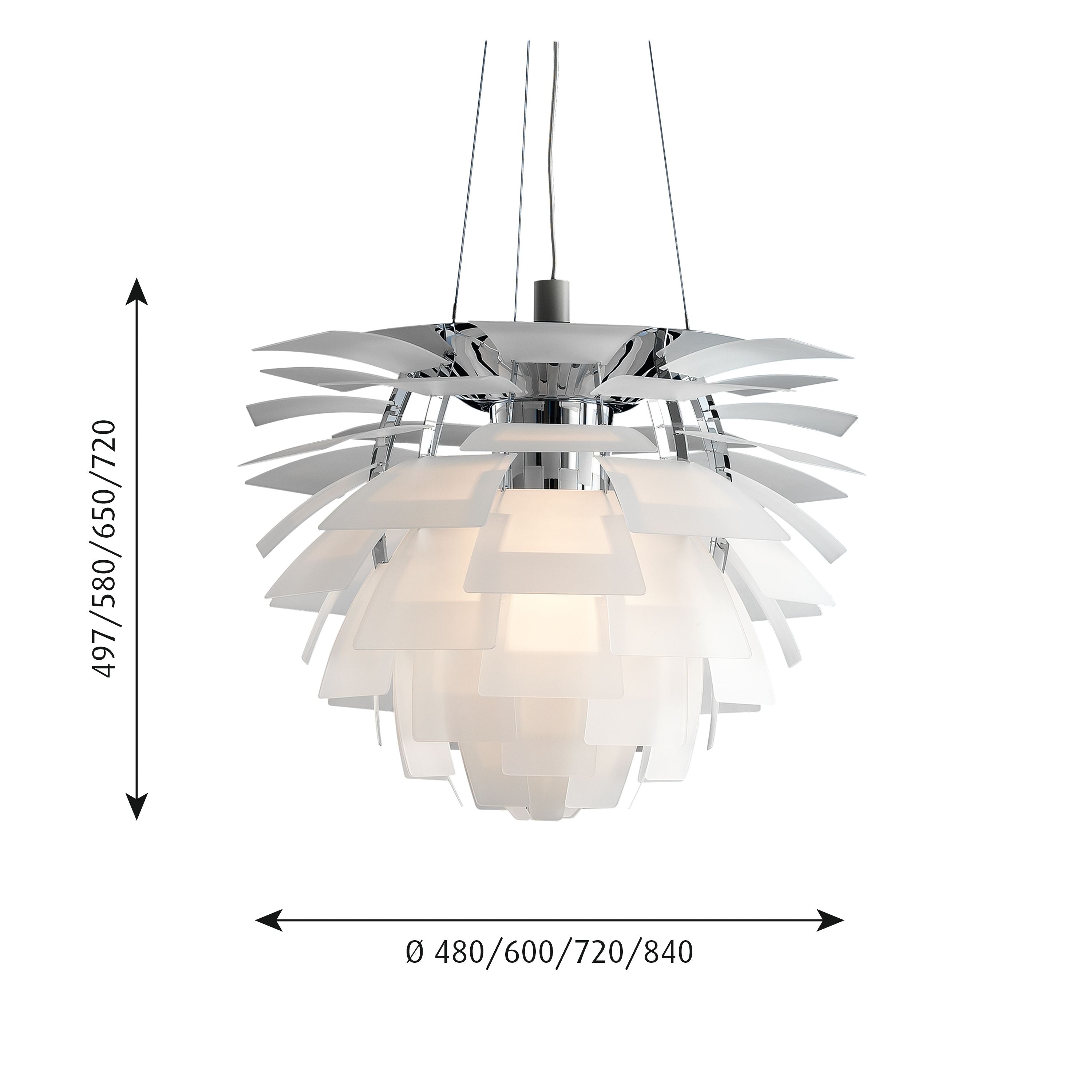 Spectacular pendant lamp PH Artichoke Glass is a glass interpretation of one of the most recognizable designs by Poul Henningsen, created in 2008. However, its concept dates back to 1927–1931, when Henningsen created the PH Septima model – a lamp with seven layers of glass featuring an exceptional light structure. In the PH Artichoke Glass pendant lamp, the designer combined his fascination with light and geometry, creating a form made up of 72 carefully arranged, hand-sandblasted glass "leaves." Each of them reflects and diffuses light in a way that ensures 100% glare-free illumination and creates a distinctive, crystalline effect reminiscent of ice. This lighting is a symbol of Danish modernism and luxurious elegance.