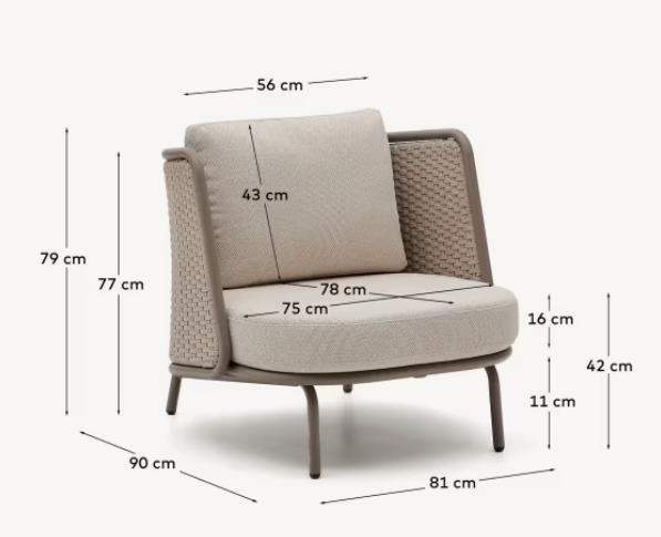 Garden armchair Sedalis is a combination of elegance, modernity and care for the environment. Its aluminum frame covered with powder polyester paint ensures resistance to UV radiation and weather conditions, thanks to which it works perfectly in both interiors and outside. The backrest and seat were made of hand -woven sun -resistant rope, which gives all lightness and modern expression. The set includes removable, waterproof pillows made of 95% of recycled material, which makes the furniture a conscious pro -ecological choice.