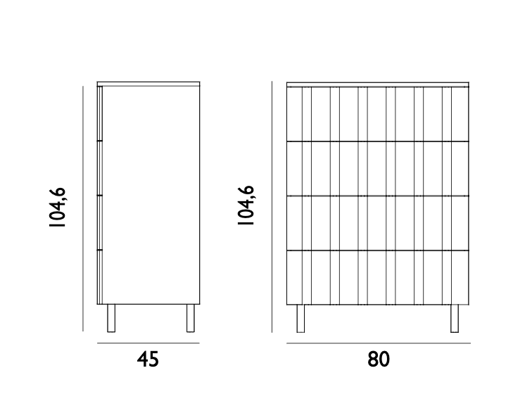 Made of varnished oak and solid wood veneer, the RIB dresser combines durability with a natural, sophisticated appearance. The thoughtful arrangement of capacious drawers and cabinets provides optimal storage space, making it both an aesthetic and practical addition to the interior. Thanks to the minimalist form and high quality materials, the chest of drawers will be perfectly found in modern, Scandinavian and classic arrangements.
