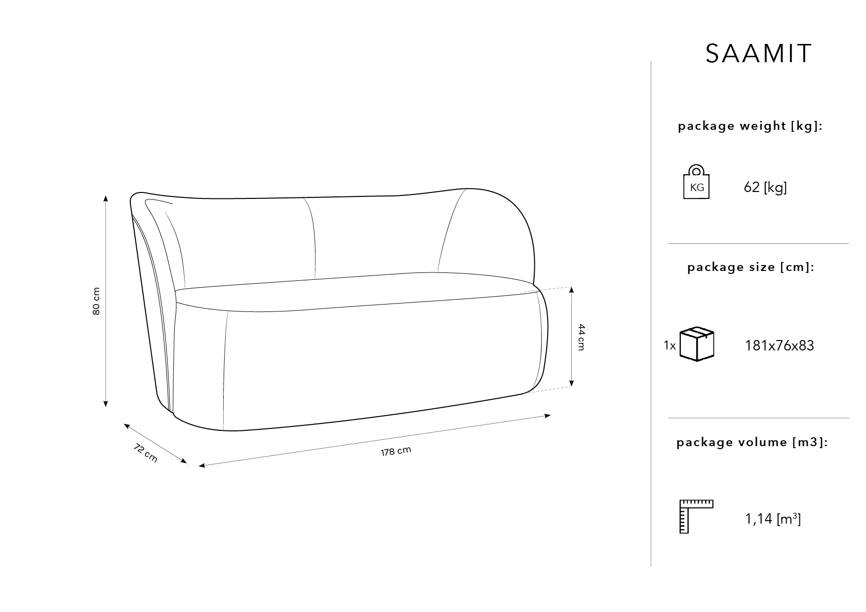 The unusual, harmonious form of the Saamit collection in Japandi style It combines elegance with functionality. This Designer sofa for three people It will bring a lot of heat to the interior thanks to the streamlined shapes. Upholstery with The thick, structural Bouclé fabric with a tight, twisted weave will create a multidimensional impression. The fabric not only looks phenomenal, but also has a very high level of abrasion resistance.