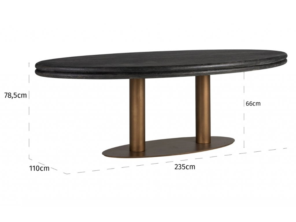Table Dining oval Macaron is a combination of exceptional aesthetics and functionality. The metal design in the shade of aged brass adds a unique character to the table, and the dark brown finish gives it elegance and a sophisticated appearance. The wooden oak top adds natural heat and charm, creating a contrast with a metal element.