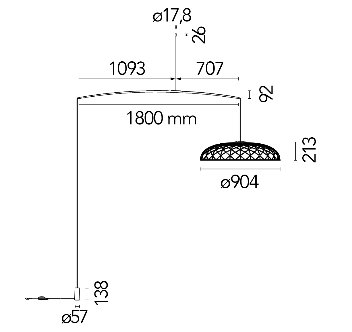 SKYNEST almond hanging floor lamp with arm