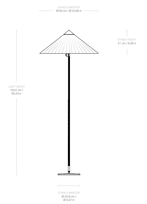 Floor lamp 9602, also known as “Chinese Hat,” was designed by Finnish lighting master Paavo Tynell in 1935 for the Aulanko hotel. This unique combination of an intricate, lightweight shade and a stem wrapped in natural rattan showcases the designer's boundless imagination and his extraordinary sense of aesthetics.