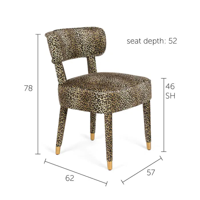 Chair Claws out is a piece of furniture that will not go unnoticed. Upholstered in a wild, leopard pattern of polyester fabric, it combines the courage of design with a classic, minimalist form. Thanks to this balance, he becomes not only a functional seat, but also an effective accent in the interior. Stable plywood frame, no-sag springs and fireproof foam ensure comfort of use, and legs made of solid rubber wood, finished with brass feet, give it elegance.