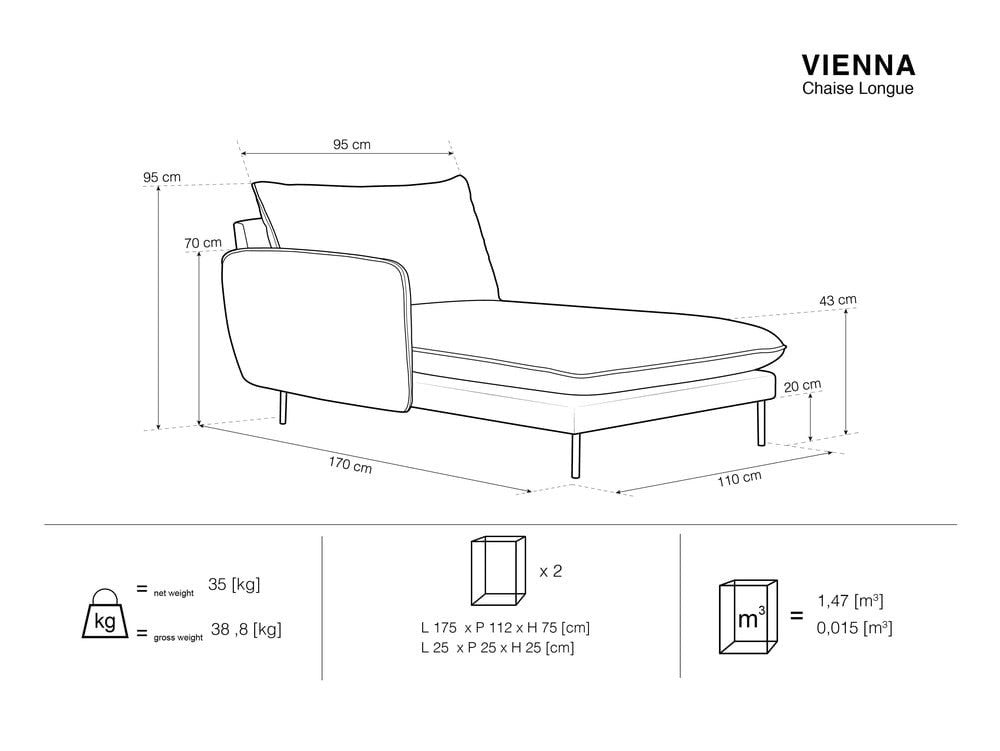 Szezlong aksamitny lewostronny VIENNA jasnoniebieski z czarną podstawą Cosmopolitan Design    Eye on Design