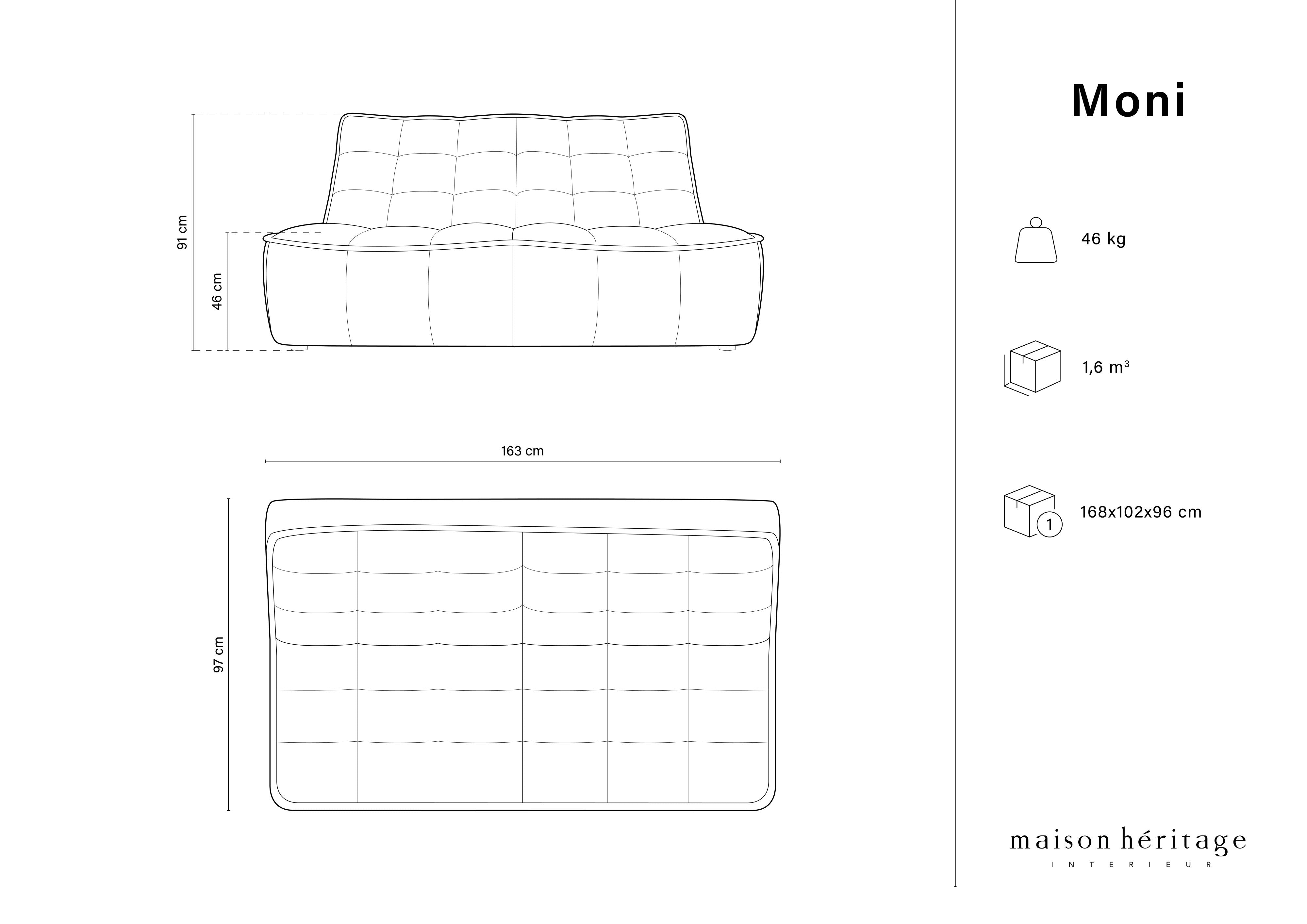 Leather sofa for two people Moni defines functionality and convenience in combination with modern design. Stylish quilting and the original block are great for both an elegant living room and a modern office. The seat and back line is arched and has a slightly profiled cavity, offering extraordinary comfort of use.