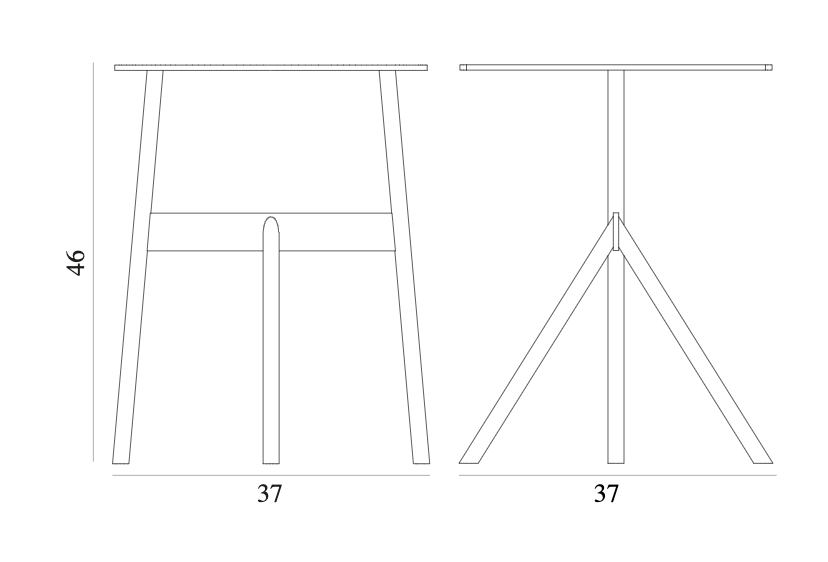 The unusual leg system emphasizes the strength of the material and creates an interesting composition of elements. Aesthetic negative spaces - open, airy space under the countertop and a triangle between oblique legs - arise thanks to the departure from the traditional system of the table legs, creating a new form of symmetry.