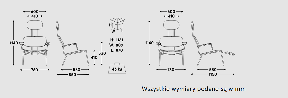 A deep seat inclined at an angle of 12 °, wide back tilted by 25 ° and ergonomic armrests ensure convenient body support. The plywood version makes it easier to keep clean, which makes the armchair a practical choice for public spaces and home relaxation zones.