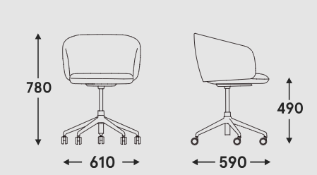 Swivel chair Grace with adjustable height is a combination of elegance and functionality, ideal for offices, conference spaces and public places. The upholstered seat inspired by classic club chairs provides comfort and style, and the height adjustment function allows you to perfectly match the chair to the desk or table, increasing the comfort of use.