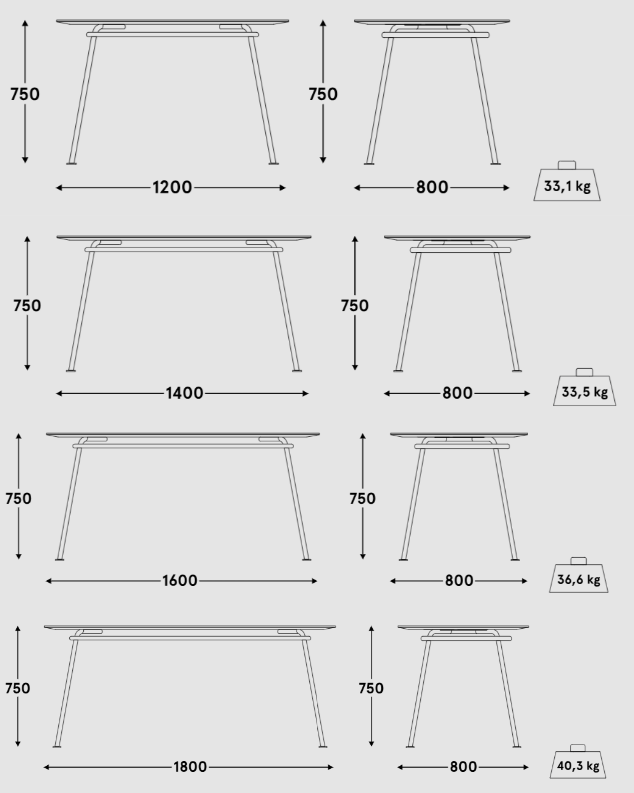 The 750 mm high top is made of easy to care MDF, covered with linoleum. The varnished rollers are matched to the frame, which emphasizes the modern nature of the project. The table is available in a selected range of intense colors, which makes it an ideal solution for office, hotel and gastronomic interiors.