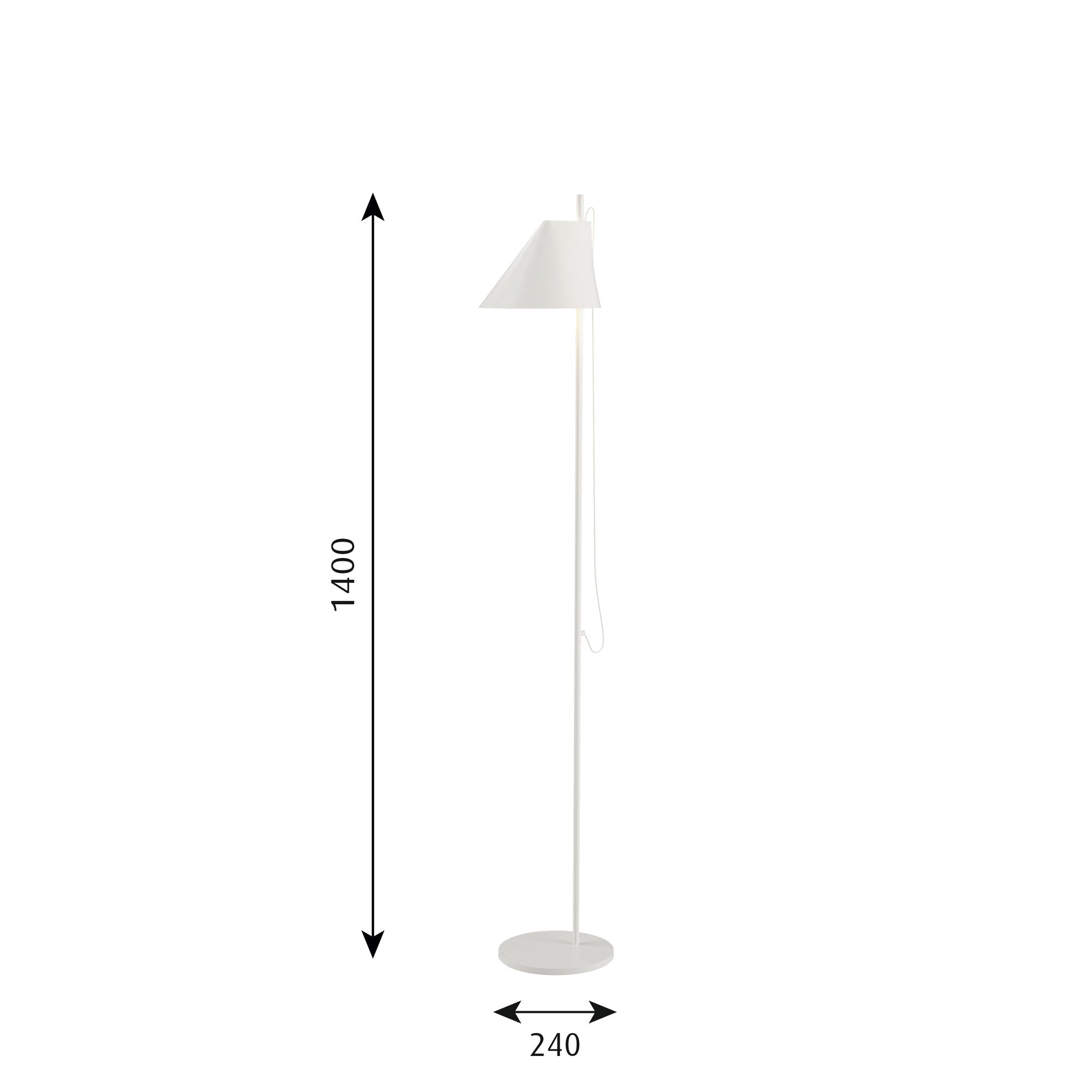 Lampa podłogowa Yuh to nowoczesna interpretacja skandynawskiego wzornictwa, zaprojektowana przez duet GamFratesi dla Louis Poulsen w 2017 roku. Jej minimalistyczna forma oraz możliwość obracania, podnoszenia i opuszczania klosza pozwala na idealne dostosowanie oświetlenia do potrzeb użytkownika. Klosz kieruje światło w dół, zapewniając komfortowe, nieoślepiające oświetlenie, a subtelne otwarcie w jego górnej części tworzy delikatną poświatę w przestrzeni. Lampa podłogowa doskonale sprawdzi się zarówno w salonie, sypialni, jak i biurze, budując przyjemną atmosferę do pracy i relaksu.