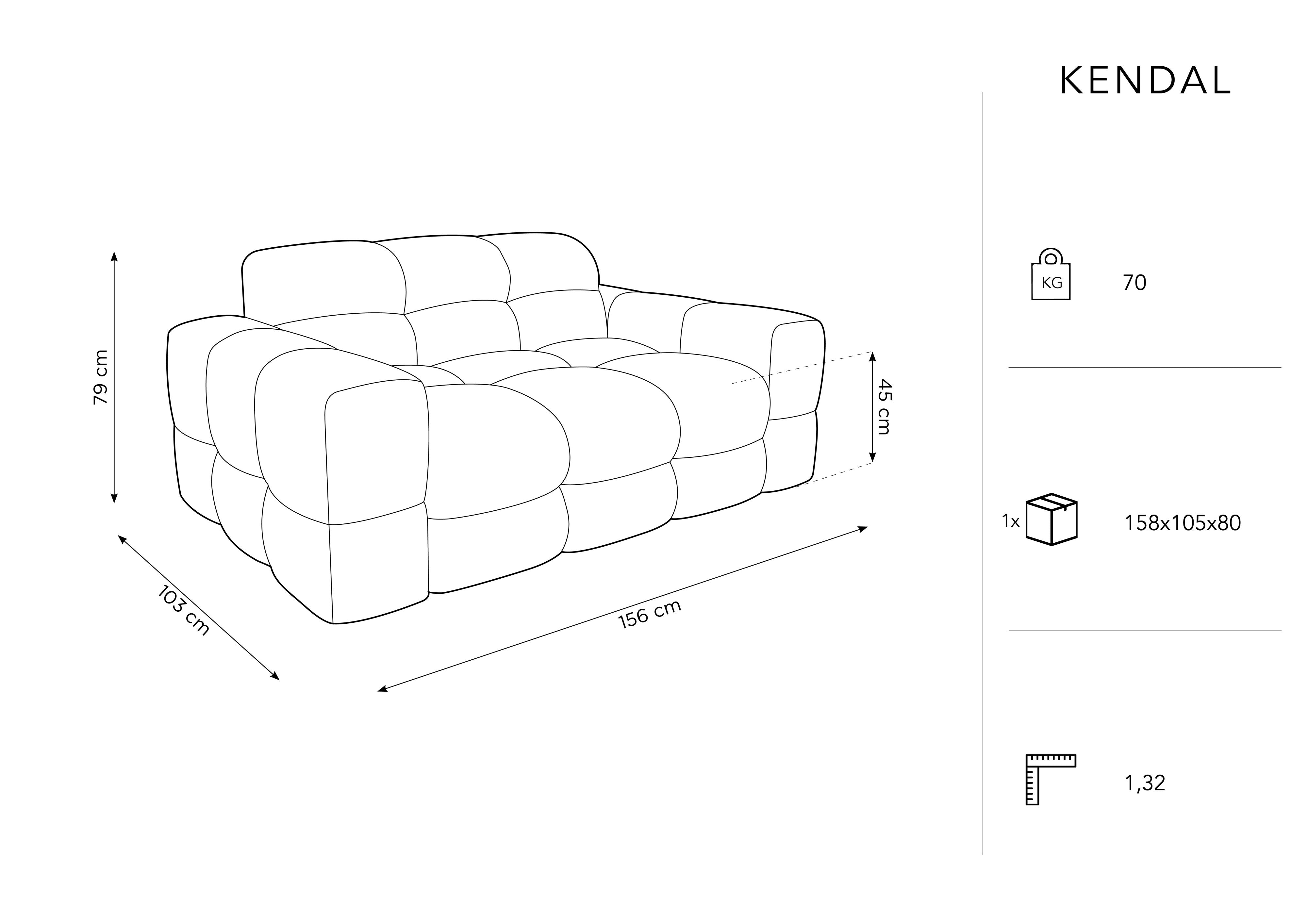 Velvet sofa for two Kendal impresses with extraordinary stitching and quilting, which will add the interior an unusual elegance in the style of modern classic. The bubble seat in combination with wide armrests and stylish support creates a comfortable place to relax after a hard day. Kendal surprises a bit with the avant -garde form and attracts attention, regardless of which side we will look at it.