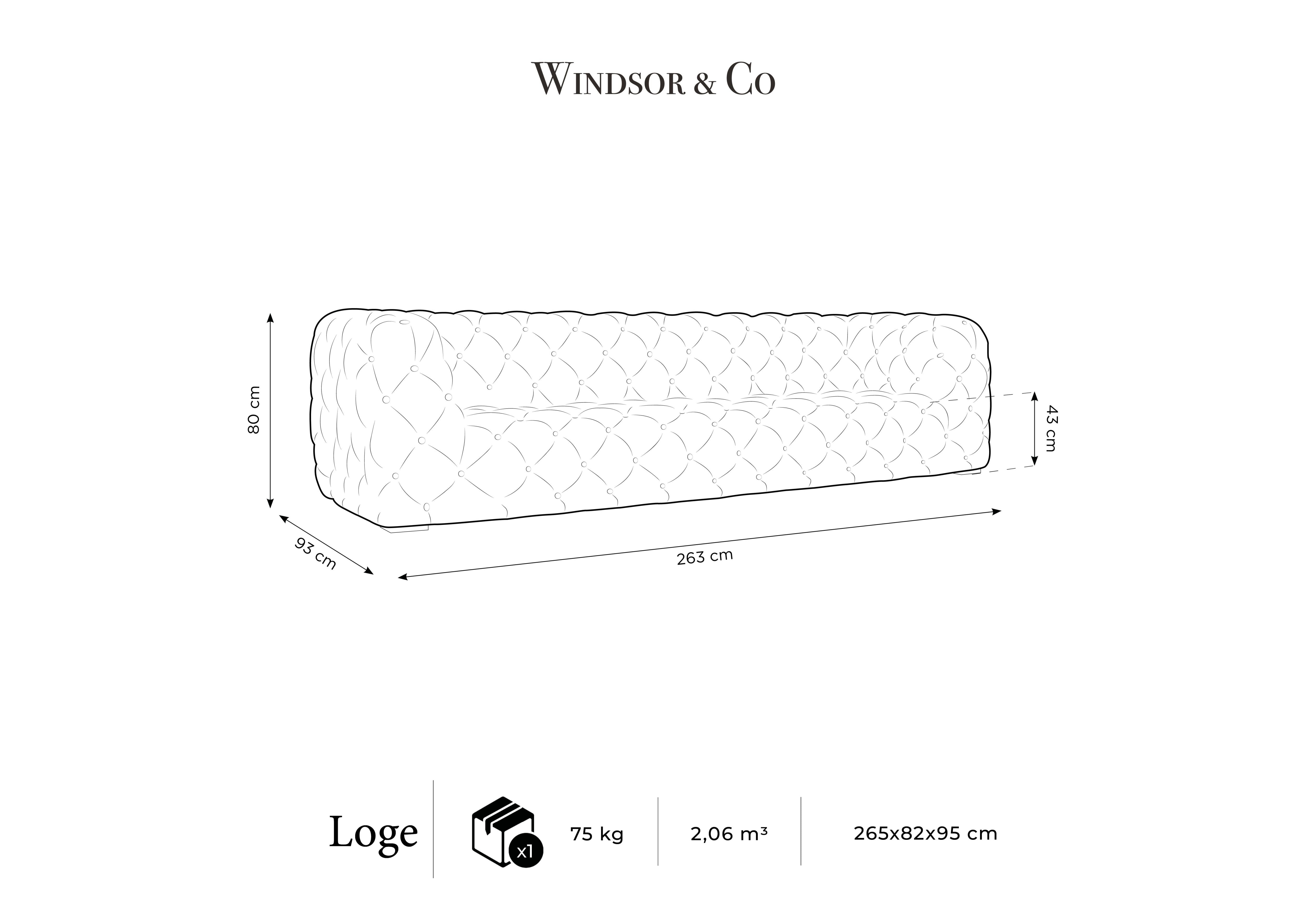 Velvet sofa for four people Loge is an amazing combination of a classic form with a little splendor. Unusual design will distinguish every living room and introduce a little elegance to the room. Deep quilting and additional squares -shaped stitching were emphasized with decorative buttons.