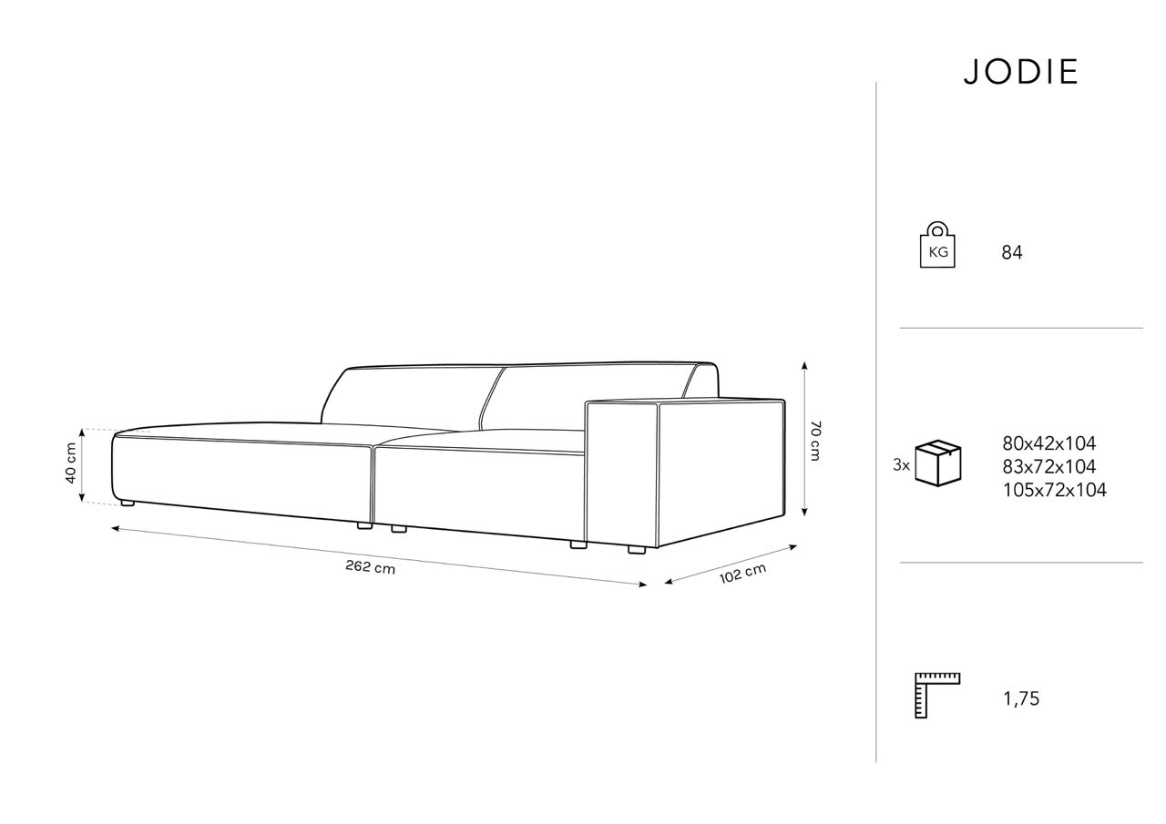Jodie is modern, unilaterally open sofa with space for three people. The sofa has been designed for functionality and convenience of use. The possibility of choosing the left or right opening side allows you to adapt the sofa to individual needs and preferences.