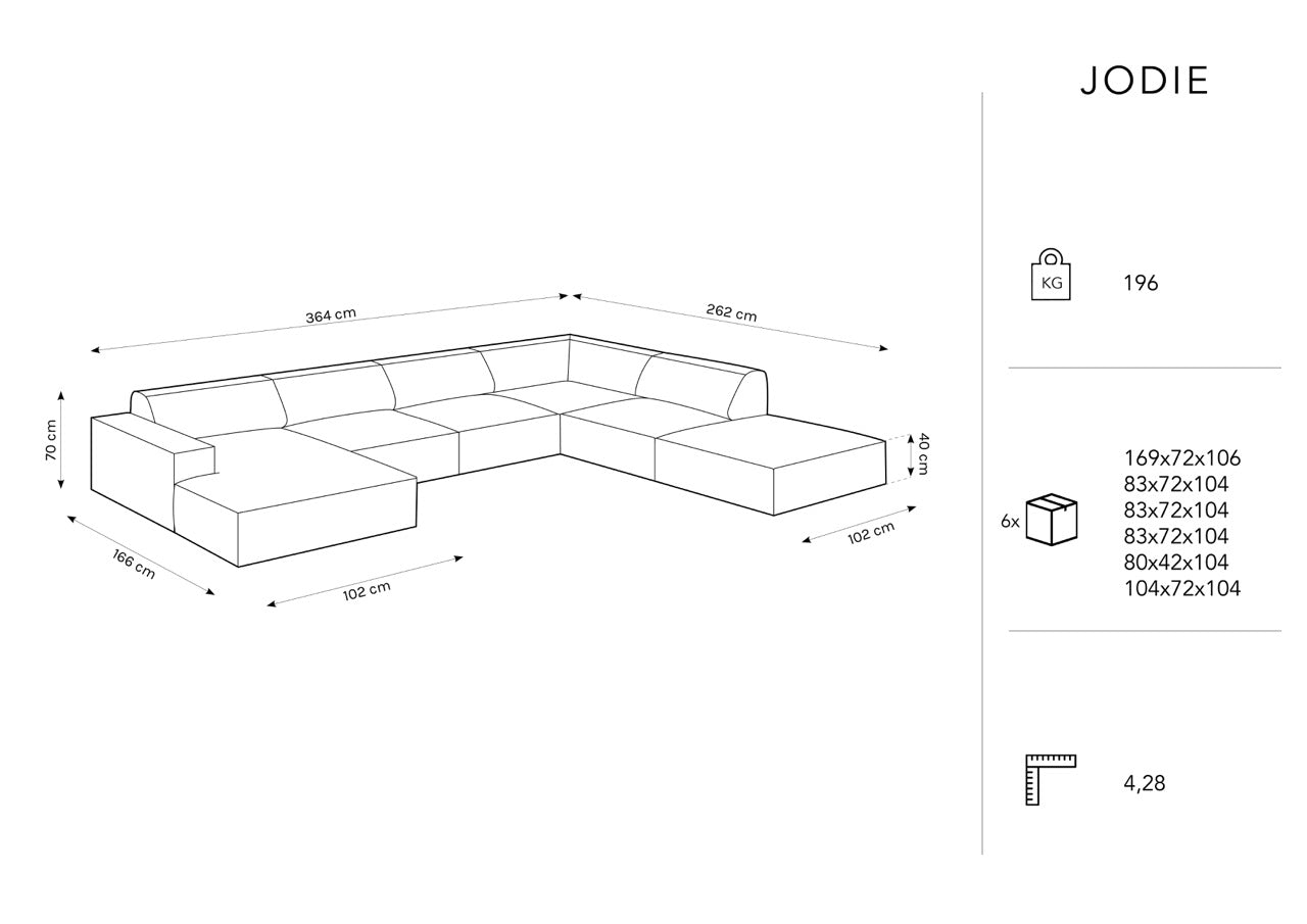 Jodie panoramic sofa is very convenient thanks to its large size, which allows you to sit on it even seven people. In addition, it has soft, comfortable back pads and seats that provide comfort during use.