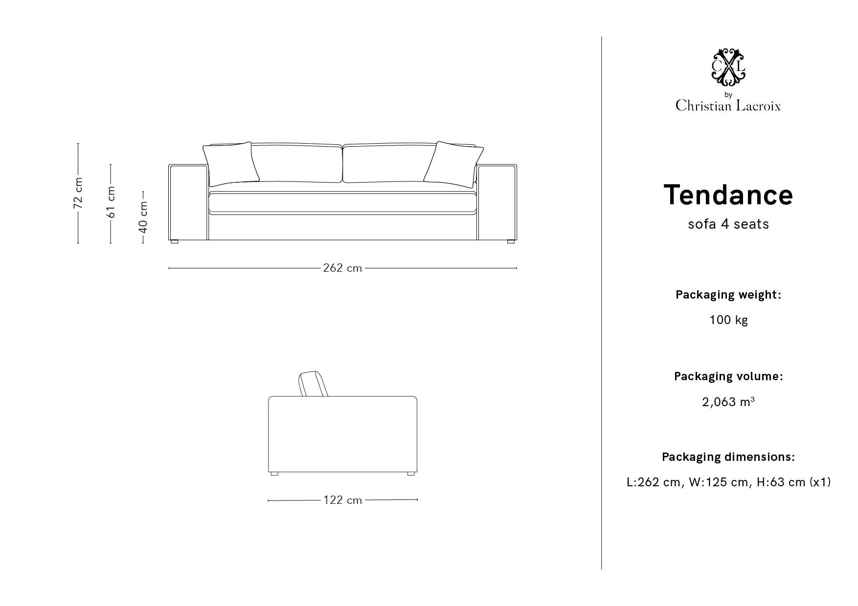 Velvet sofa for four people Tendance, signed by French fashion house Christian Lacroix, This is a beautiful combination of timeless elegance with modern design. The geometric and subtle shapes of this sofa will bring a bit of coziness to your interior. Its cubic design gives the whole a unique character.