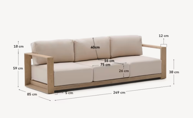 Sofa Ambra is an elegant combination of minimalist design and natural durability, which is perfect for both interiors and outside. Made of solid acacia wood with a light finish, it is characterized by simple lines and precisely finished corners, emphasizing its timeless aesthetics.