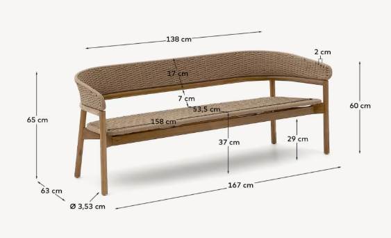 Arinella external sofa solid acacia wood with a beige rope