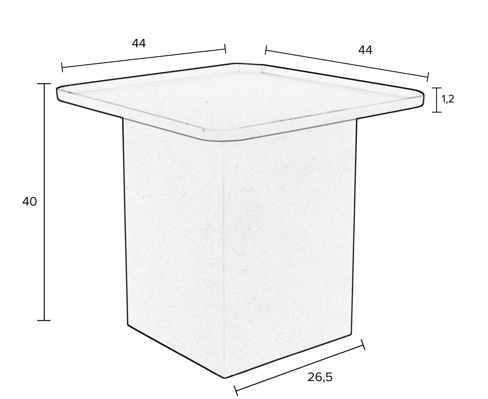 Table It has a small, square top with a raised edge and slightly rounded edges, which gives it a subtle character. The geometric, uncomplicated form of furniture in combination with an unusual finish makes it a great addition to the interior.