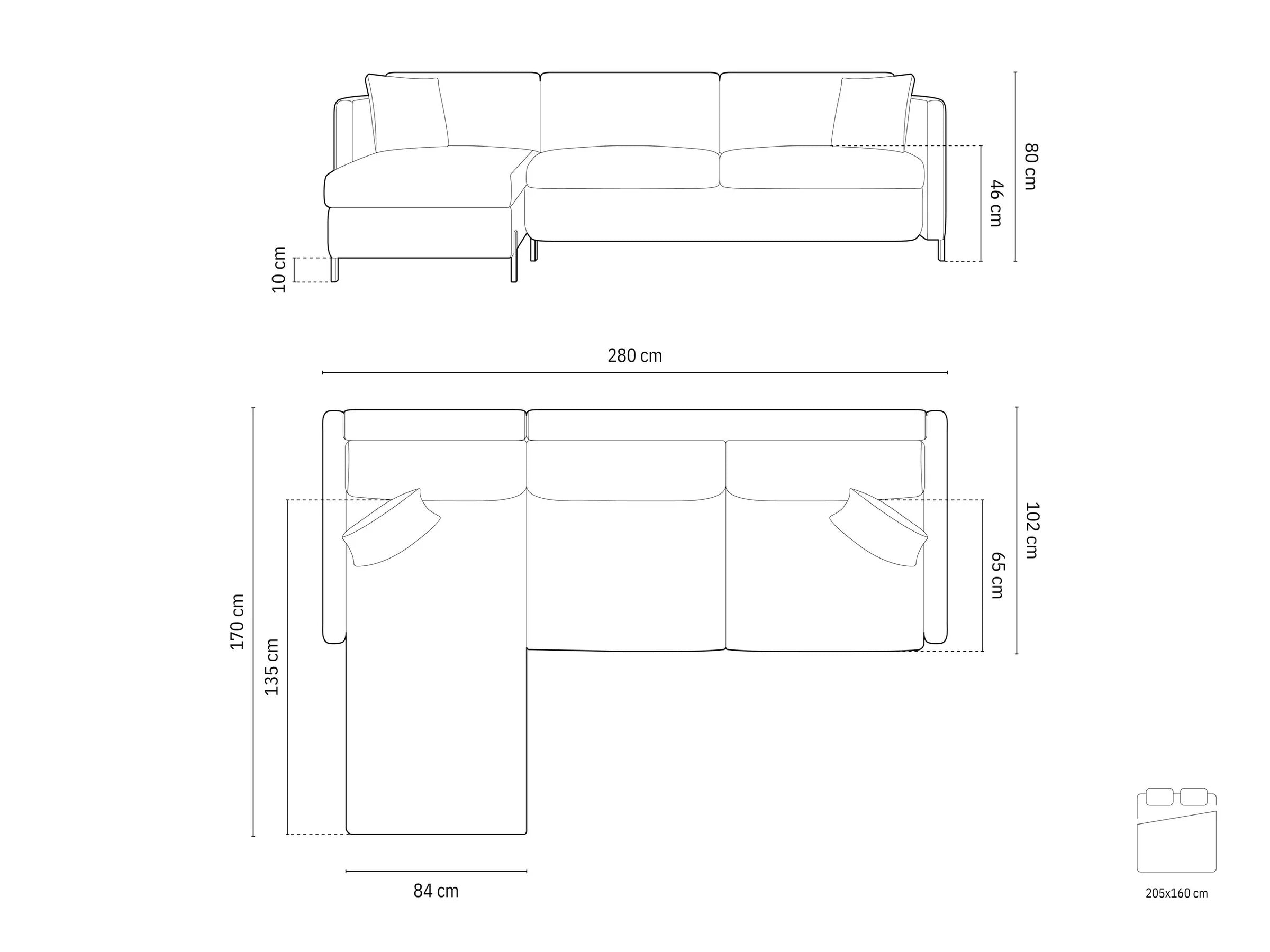 Velvet Left Corner Sofa with Bed Function, "Gloria", 5 Seats, Gray, 280x170x80 Made in Europe