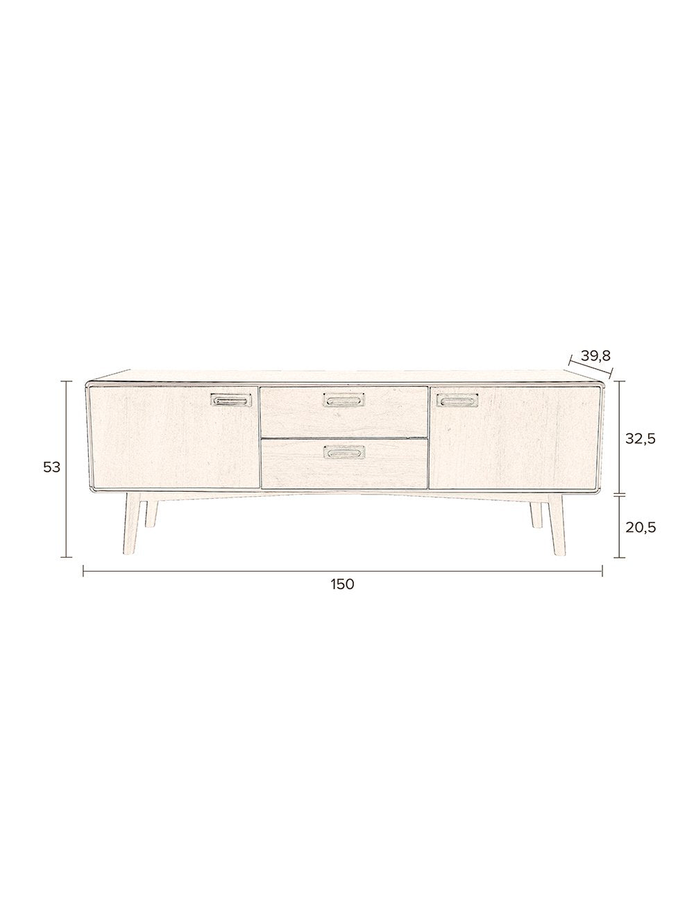 The whole structure is complemented by wide handles that emphasize the unique design. Dresser It has three modules with shelves, as well as a retractable drawer, where all the small items from the living room or bedroom will find.
