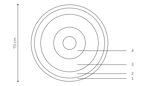 The Afangora Wall Sconce is a fusion of geometry, color, and light. Inspired by the works of Wojciech Fangor, this wall lamp captivates with its dynamic, concentric composition of circles. The effect of three-dimensionality and subtle lighting makes it not just a source of illumination, but also an intriguing decorative object – whether on the wall or the ceiling.