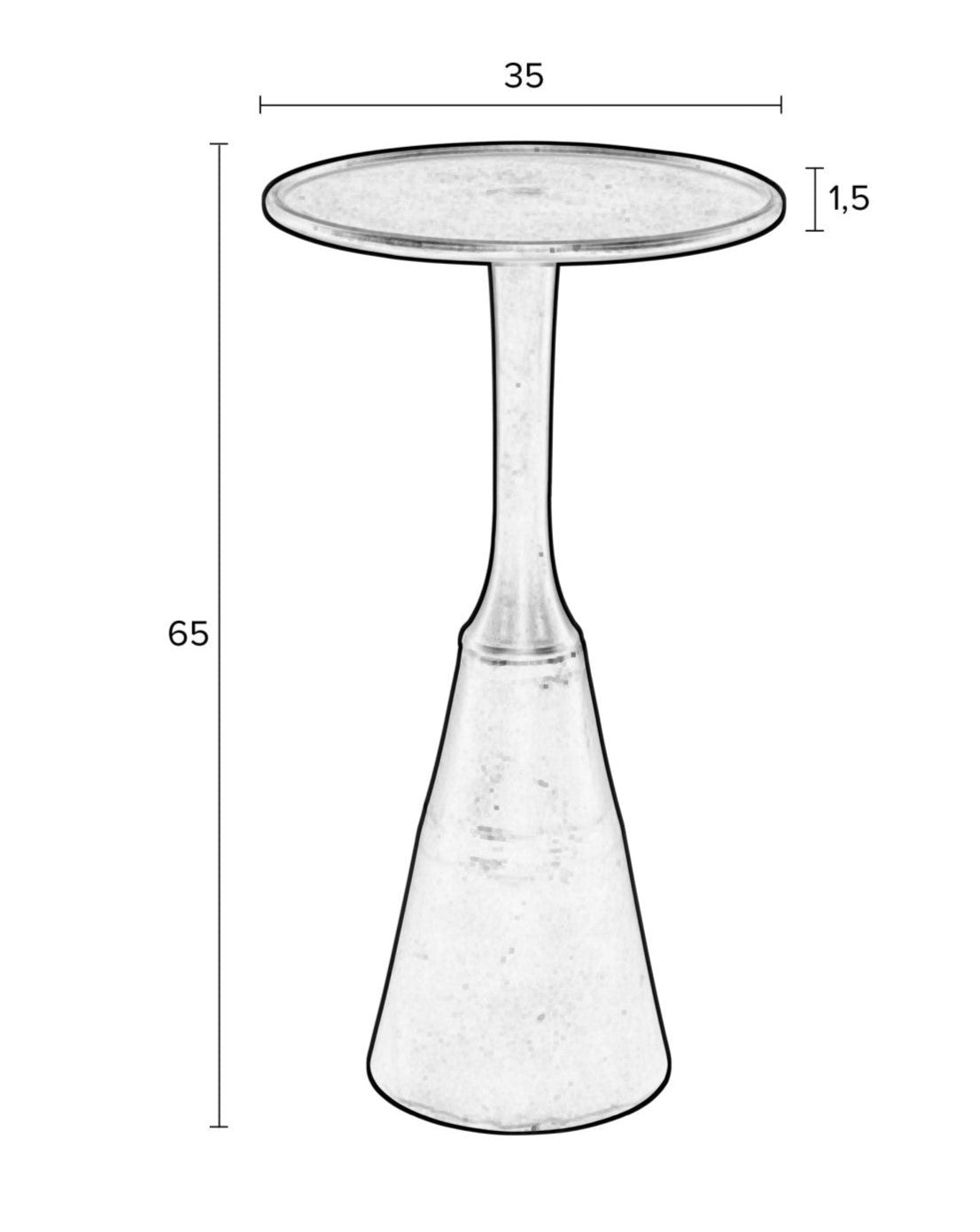 Ein ovaler Top 35 Zentimeter im Durchmesser sorgt für die Verwendung der Freiheit. Es besteht aus Aluminium, die mit Farbe bedeckt sind. Der Tisch verfügt dank der Metallsäule, die sich an der Basis ausdehnt.