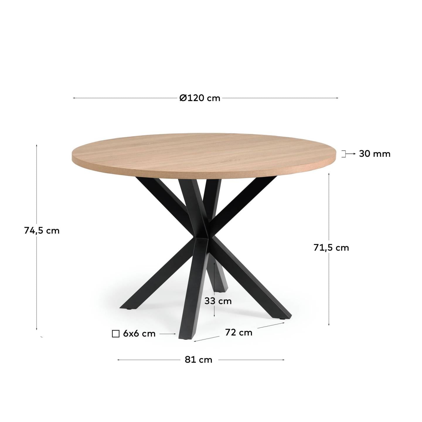 Runder Tisch Argo mit einer melaminierten Arbeitsplatte und einer schwarzen Basis ist ein großes Angebot für moderne Innenräume und kombiniert die Funktionalität mit elegantem Design. Seine runde Form macht es ideal für kleinere Räume, die Einführung von Harmonie und die optische Vergrößerung des Innenraums.