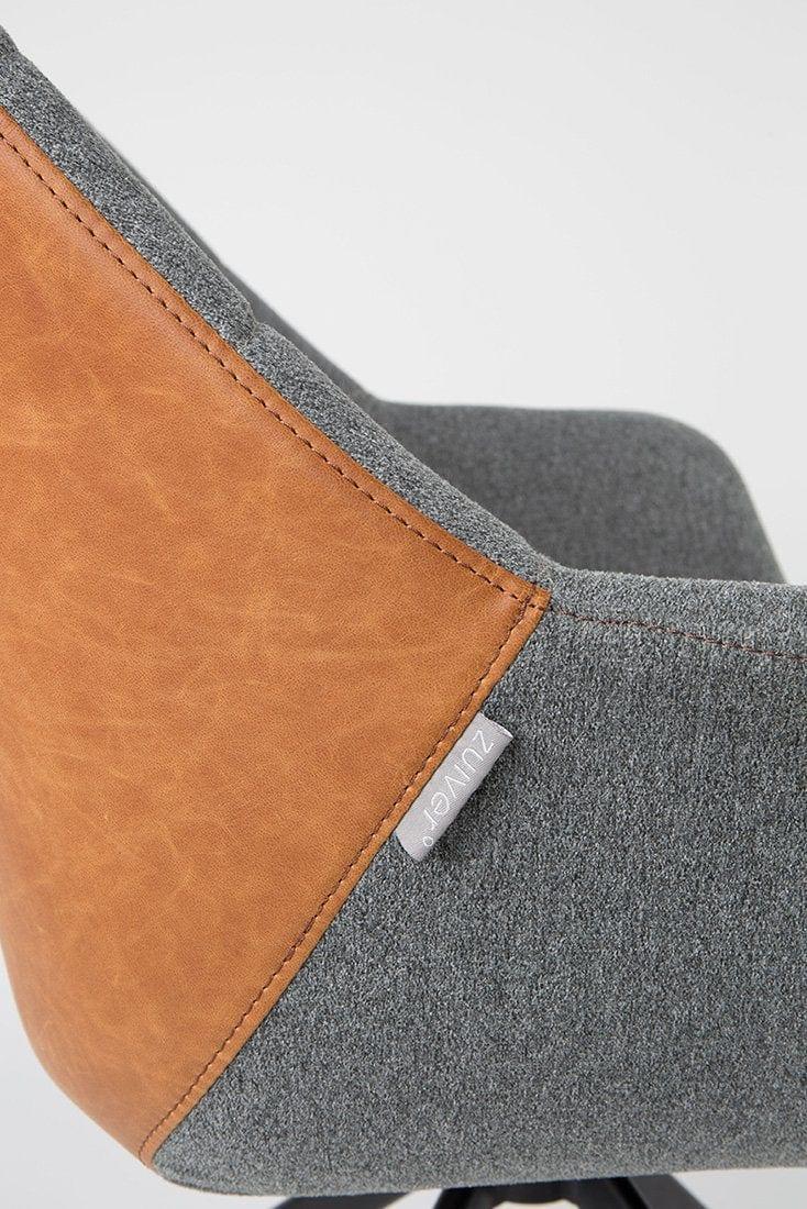 Der feste Rahmen besteht aus Metall. Sessel für das Wohnzimmer Dulton hat einen Sitz mit Polyestergewebe, zu dem die Eco -Ledereinsätze hinzugefügt wurden. Die Kombination von Braun und Grau wird von Design stilvoll betont Vintage und Es sieht äußerst interessant aus.