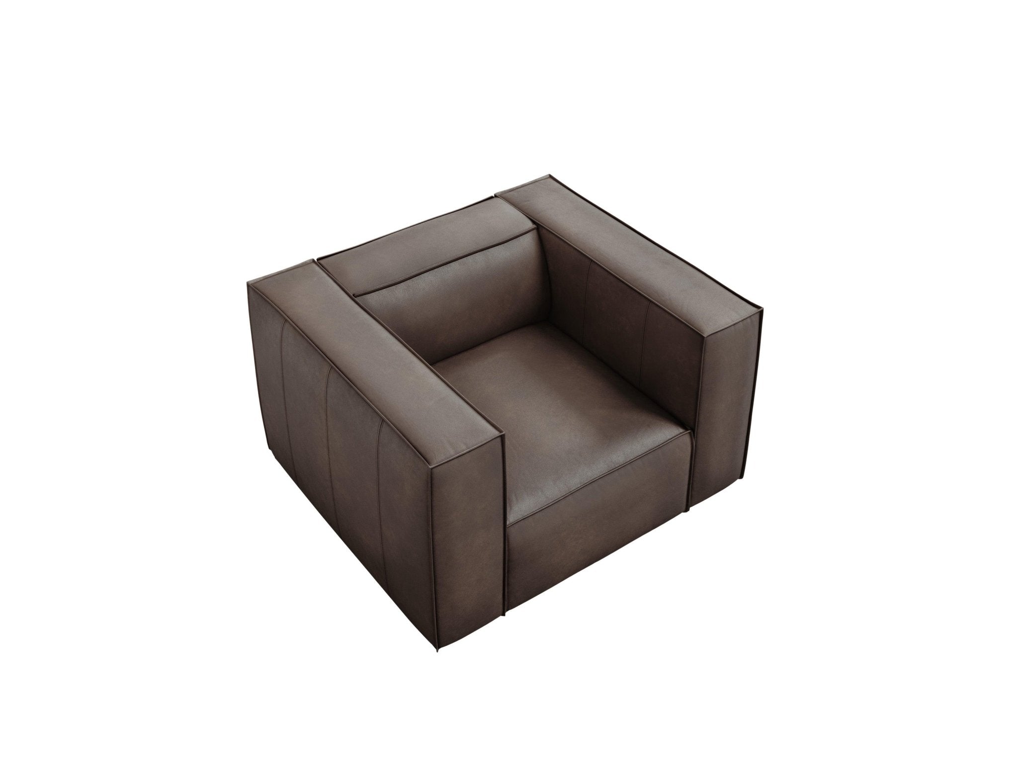 Ledersessel Madame ist die perfekte Kombination aus Eleganz mit zeitloser Form. Der geometrische, leicht rohe Block eignet sich hervorragend für moderne klassische Innenräume mit einem Hauch von Moderne. Dekorative Nähte auf der Lederpolsterung verleihen einen ungewöhnlichen Charakter. Holzbuchenholzbeine sehen nicht nur schön aus, sondern bilden auch eine feste Basis.