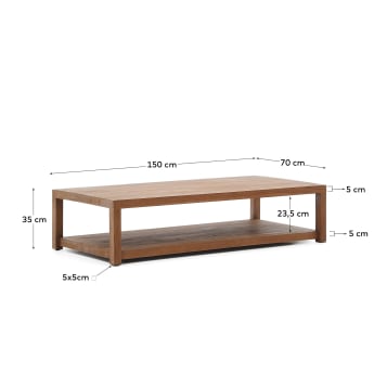 Tisch Es besteht aus dem Unterrichten von Holz mit einem FLEGT -Zertifikat, das verantwortungsbewusste Holzerwerb fördert. Dank des unteren Regals bietet der Tisch zusätzlichen Speicherplatz und die verstellbaren Beine können Sie perfekt mit den ungleichmäßigen Oberflächen übereinstimmen, was ihm die Funktionalität und Praktikabilität im täglichen Gebrauch verleiht.