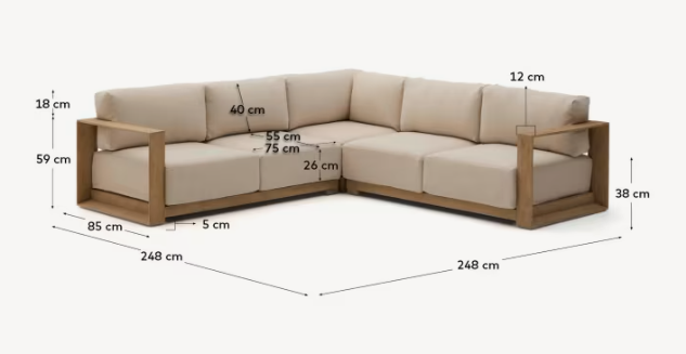 Ambra Außen Ecke Akazienholz mit cremiger Sitz