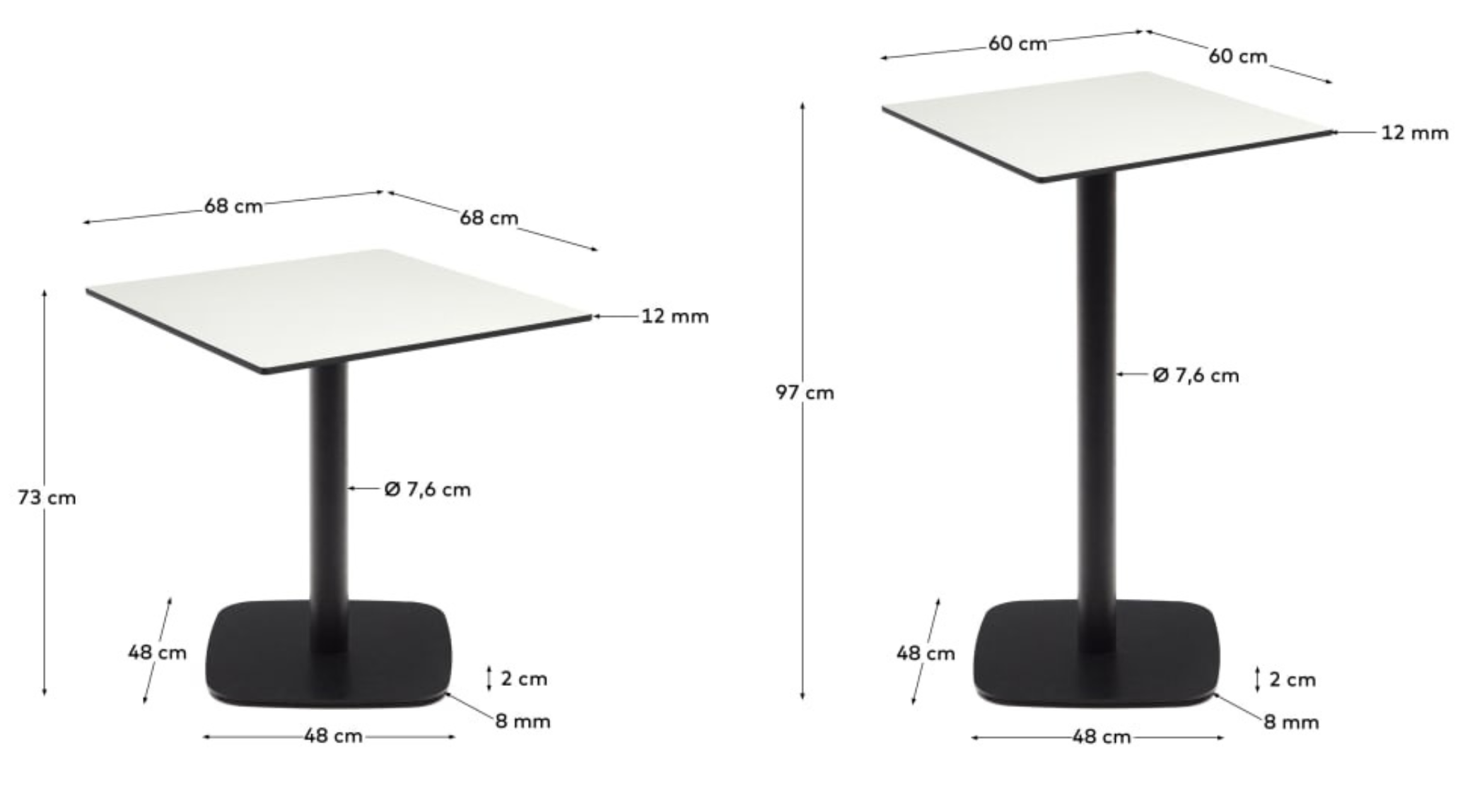 Dina Black Basic Garden Tisch mit einer weißen Arbeitsplatte