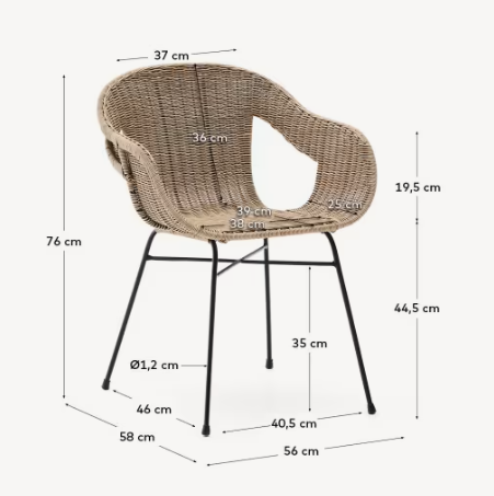 Eltiera es einzigartiger Stuhl Über ein rustikales, aber modernes Design, das die natürliche Ästhetik des synthetischen Rattan mit der Stärke einer Stahlstruktur perfekt kombiniert. Dank der abgerundeten Linien passt dieses Modell perfekt in moderne und klassische Räume und verleiht ihnen eine subtile Eleganz.