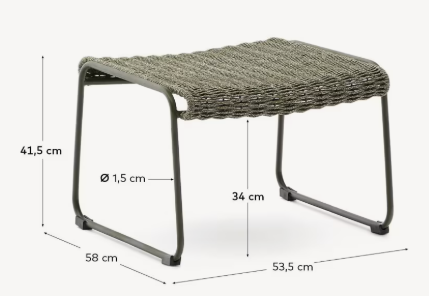 Design Fußstütze Es besteht aus verzinktem Stahl, was eine hohe Beständigkeit gegen Rost und Korrosion sowie Haltbarkeit selbst bei schwierigen Wetterbedingungen gewährleistet. Der Sitz aus handgefertigten UV -resistenten Seil verleiht ihm Leichtigkeit und einen einzigartigen Stil und sorgt für den Komfort des Gebrauchs.