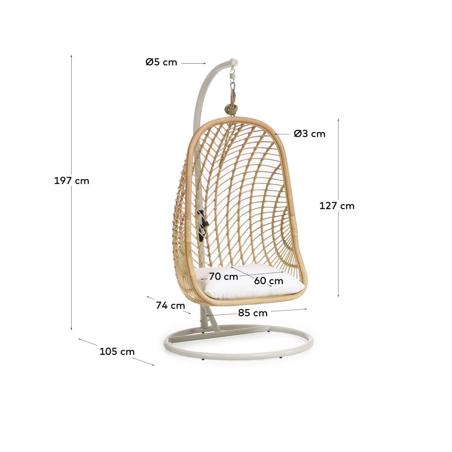 Rattan Ecaterina Hanging Sessel mit einer grauen Basis
