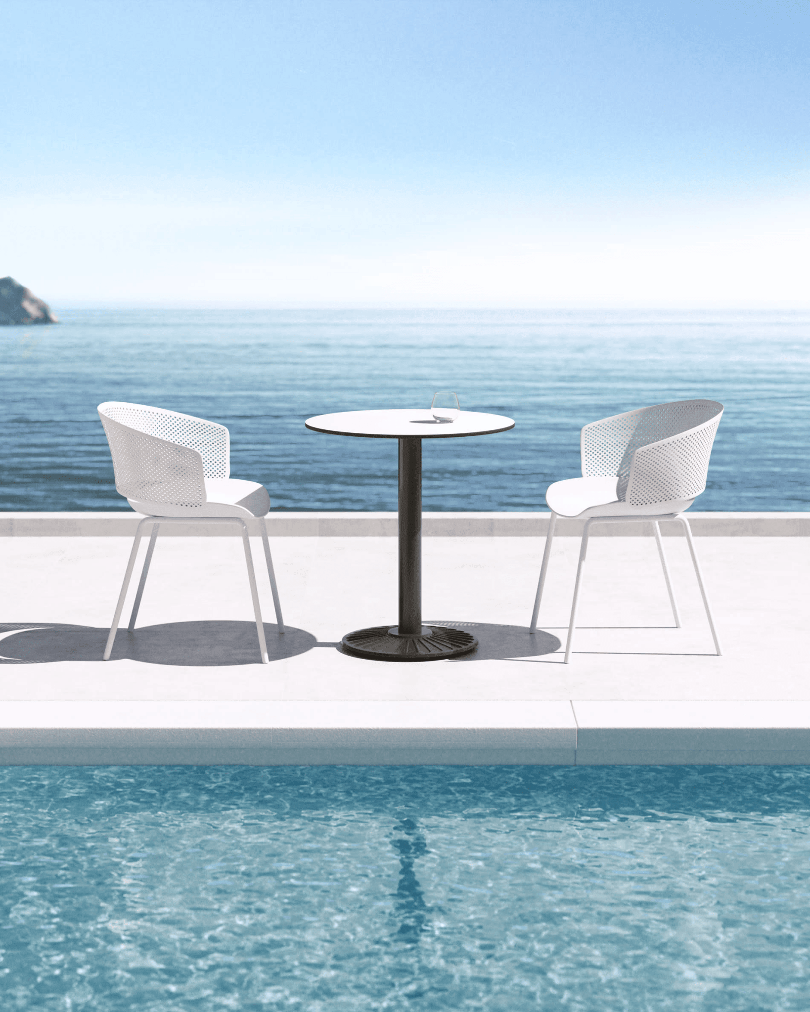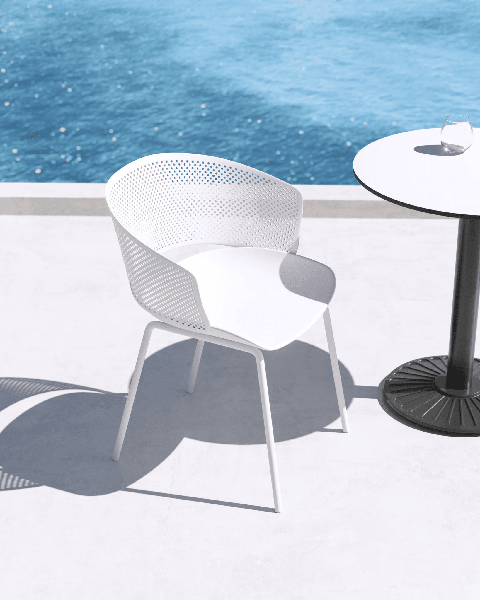 Dank des Widerstands gegen UV -Strahlung, weiße Stühle Yeray behält auch während der Sonne ihre intensive Farbe und ihr ästhetisches Erscheinungsbild, was sie das ganze Jahr über zu einer idealen Wahl für das Außenbereich macht. Unabhängig von den Wetterbedingungen bleiben diese Stühle ein immer stilvoller Element Ihres Raumes.