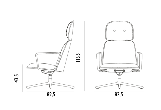 Die PAD -Serie enthält Sessel mit einem hohen und unteren Rücken und einem passenden Fußstütze. Es stehen drei Arten von Basen zur Auswahl: statischer Stahlrahmen in schwarz oder grau, rotierender Basis im schwarzen oder polierten Aluminium und einer Basis mit Handels- und Neigungsfunktion, ebenfalls in schwarzem oder poliertem Aluminium für eine größere Mobilität. Jede der Optionen verbinden sich mit einer Rückenlehne aus natürlicher Eiche oder schwarzer Eiche und bietet drei verschiedene Polster in einer Vielzahl von Farbtönen.