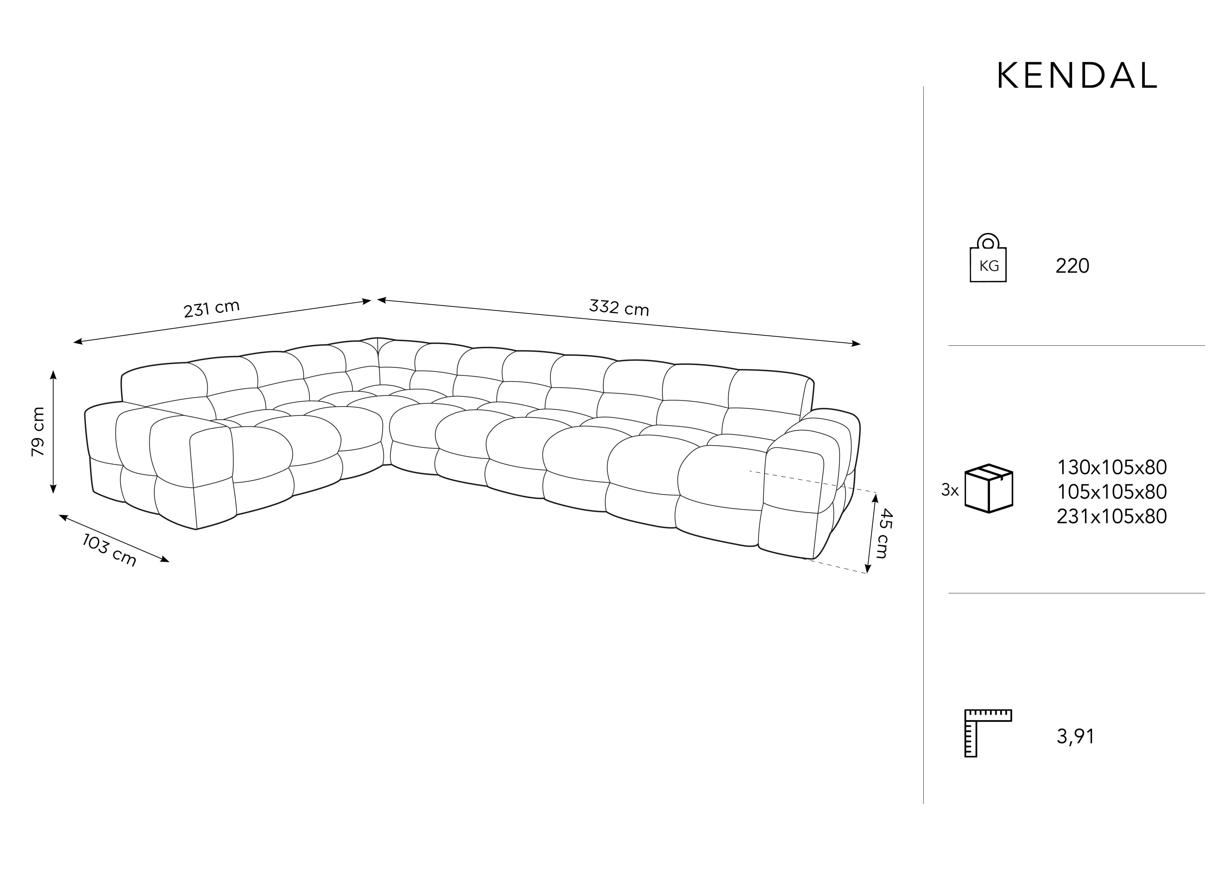 Narożnik lewostronny 6-osobowy KENDAL jasnoszary Micadoni    Eye on Design