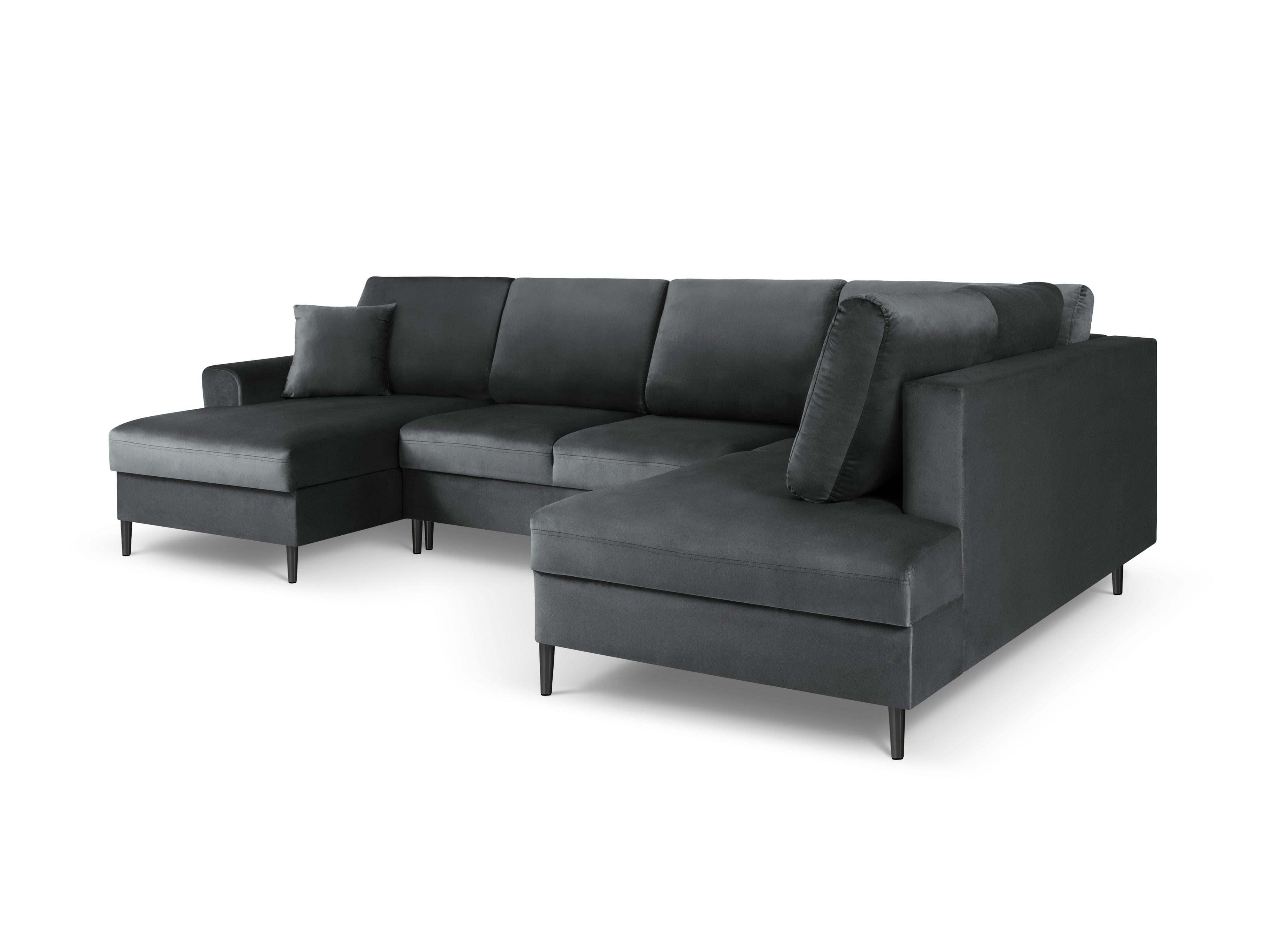 Narożnik prawostronny aksamitny panoramiczny z funkcją spania KYOTO ciemnoszary z czarną podstawą Cosmopolitan Design    Eye on Design