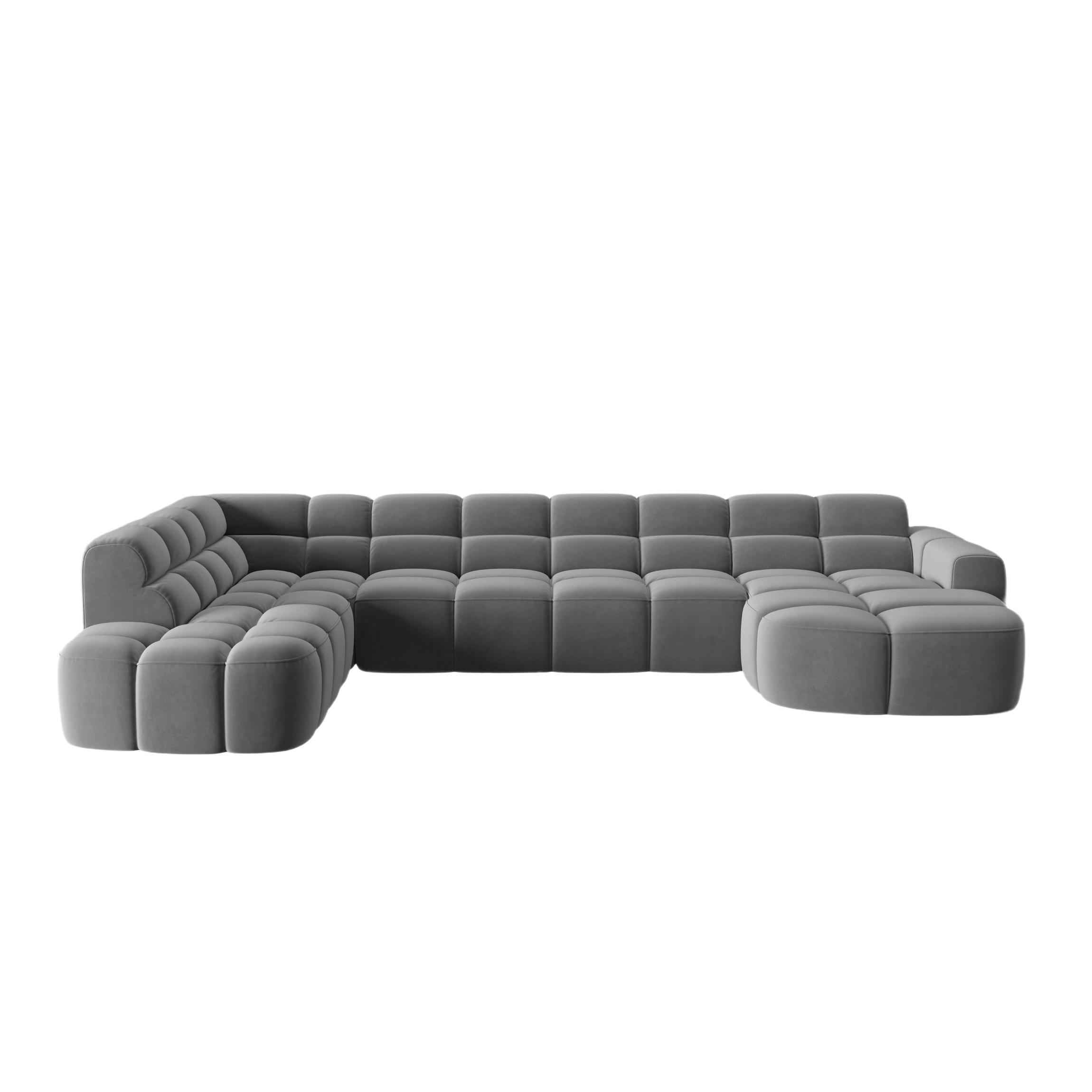 Narożnik aksamitny prawostronny 4-osobowy otwarty JODIE jasnoszary Micadoni    Eye on Design