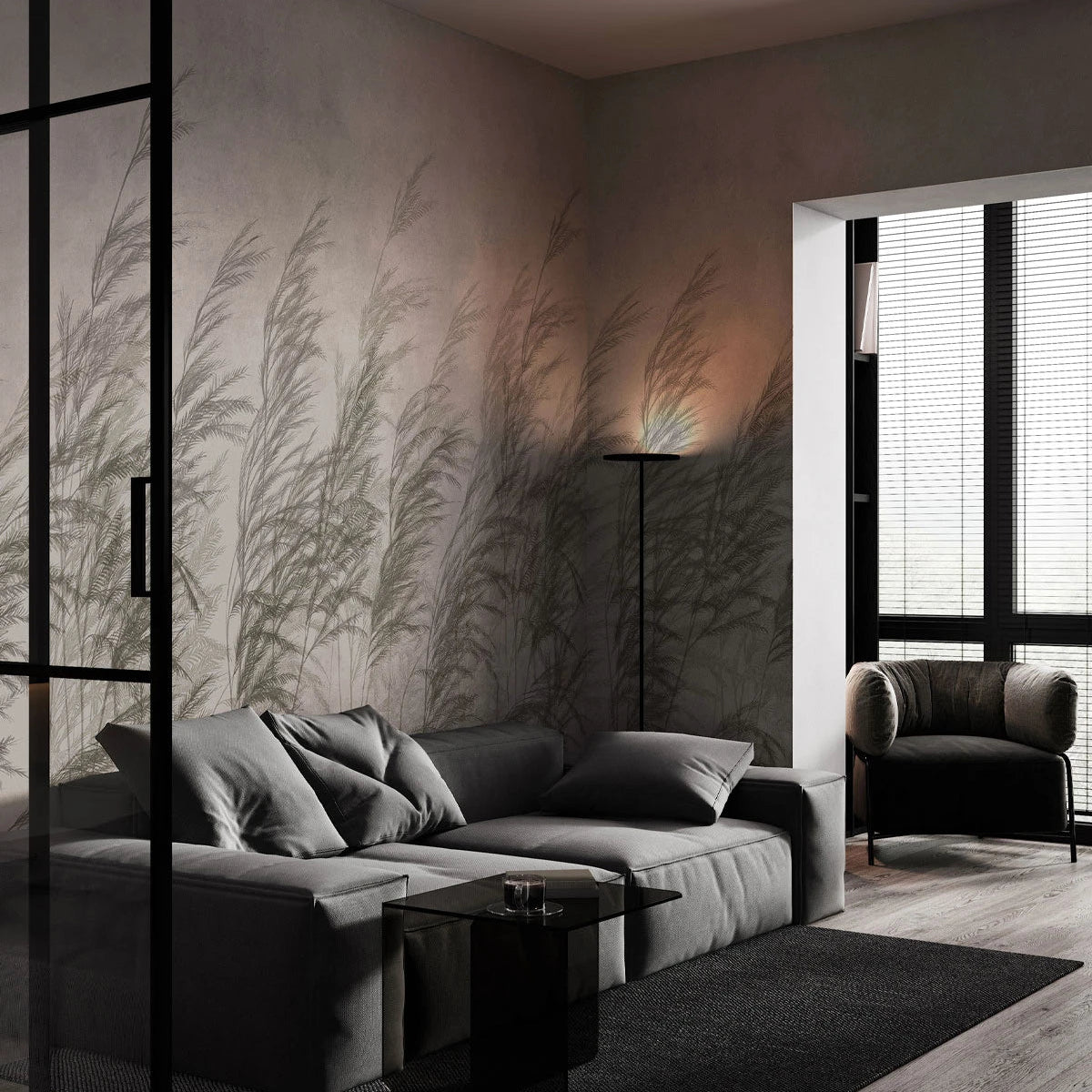 Tapeta flizelinowa z roślinnym wzorem DRY GRASS grau-beige