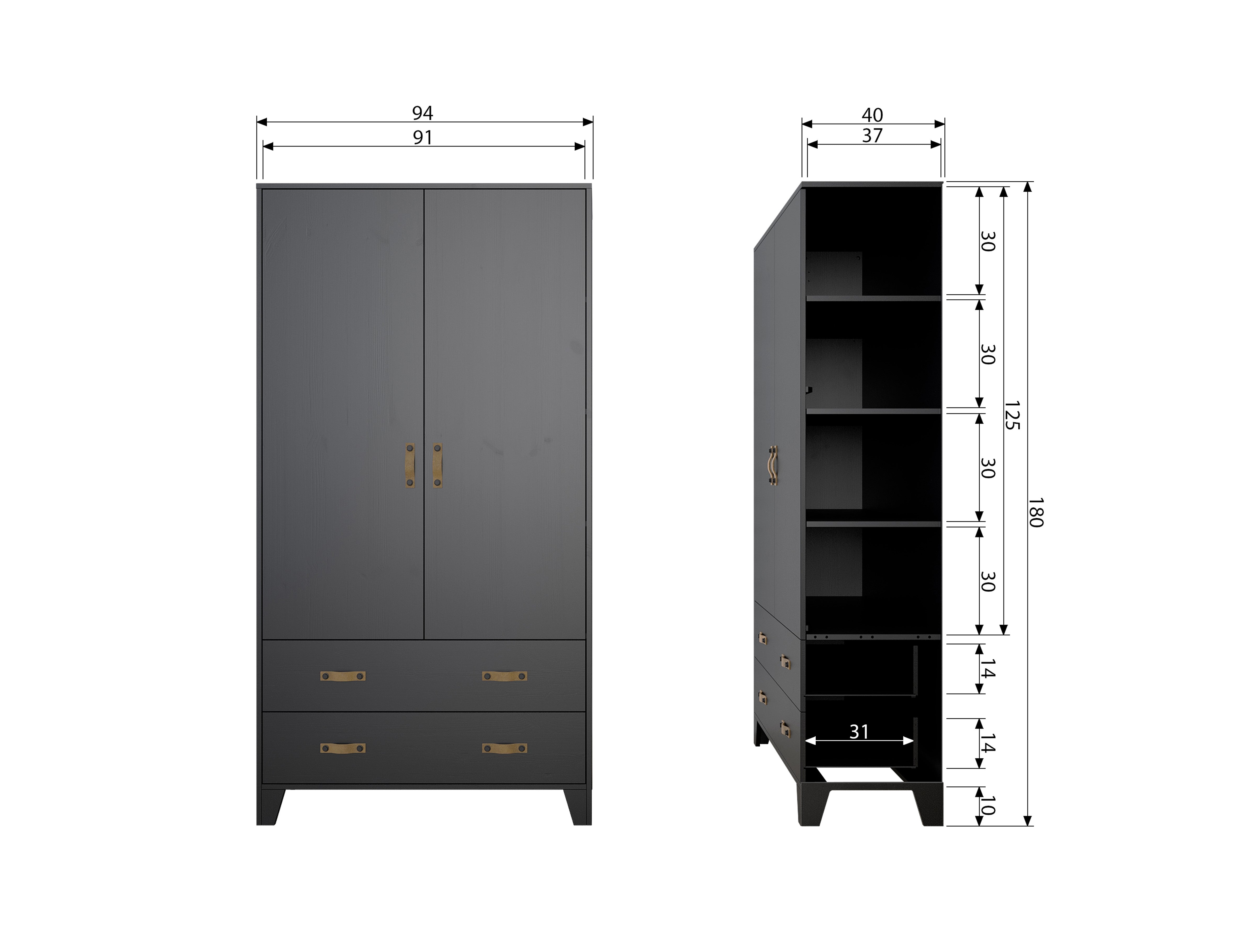 2-Türer-Garderobe mit Schubladen Dian Black Wood