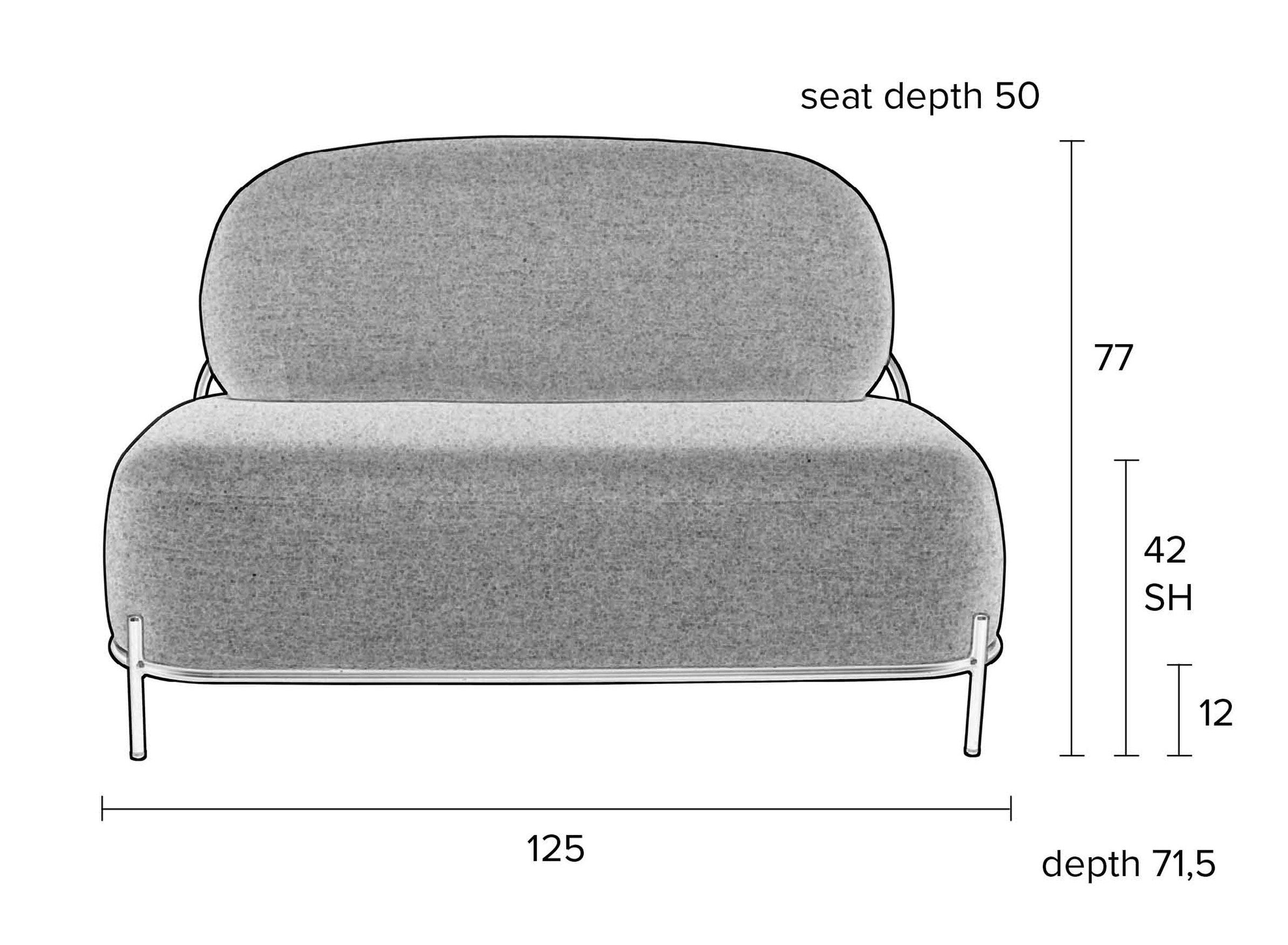 Sofa Polly ist ein Möbelstück, das einen bequemen Ort zum Ausruhen bietet und Ihrem Innenraum auch eine einzigartige Ästhetik verleiht. Das Sofa besteht aus hochwertigen Materialien, einschließlich Polyesterstoff und einem Rahmen aus Holzbasis, der mit Polyurethanschaum gefüllt ist, sowohl langlebig als auch stilvoll. Polly Sofa wird auf einem schwarzen, pulvergelackten Eisenrahmen gelegt und ist durch Eleganz, Stabilität und Solidität gekennzeichnet. Dies ist die perfekte Wahl für diejenigen, die Komfort und anspruchsvolles Design schätzen.