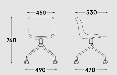 Basis: 4 -Metall -Schulter, pulvergesteuertes, Rotationssitz - 360 °, Beine vom Rohr Ø22 mm, Räder für weiche oder harte Oberflächen
