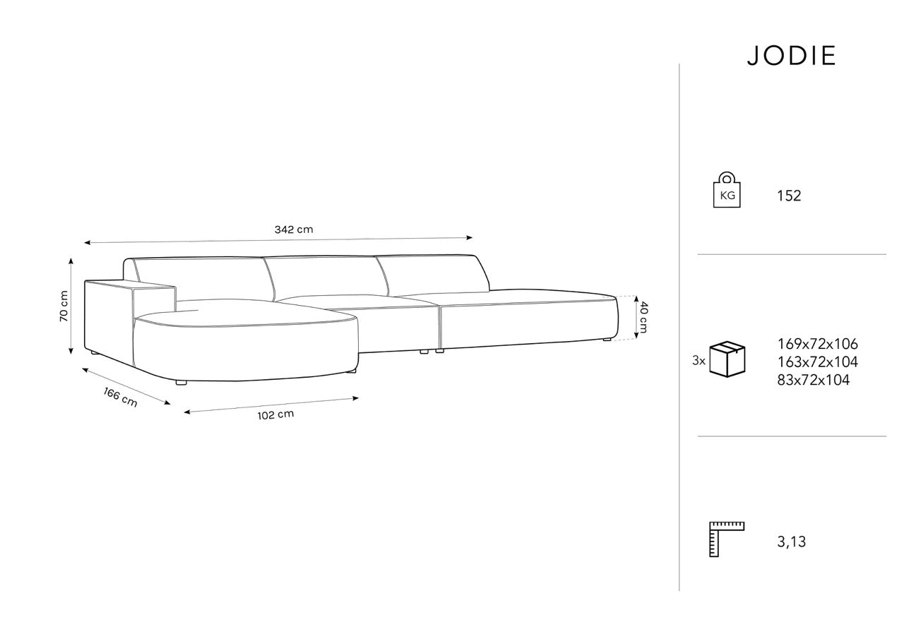Jodie ist stilvoll, vier Ecksofa, der aus hochwertigen Welvet -Stoffen bestand. Samtig Das Finish verleiht dem Sofa einen eleganten Look und bietet zusätzlichen Komfort. Das Sofa hat einen ovalen Sitz, der einen modernen Look verleiht.