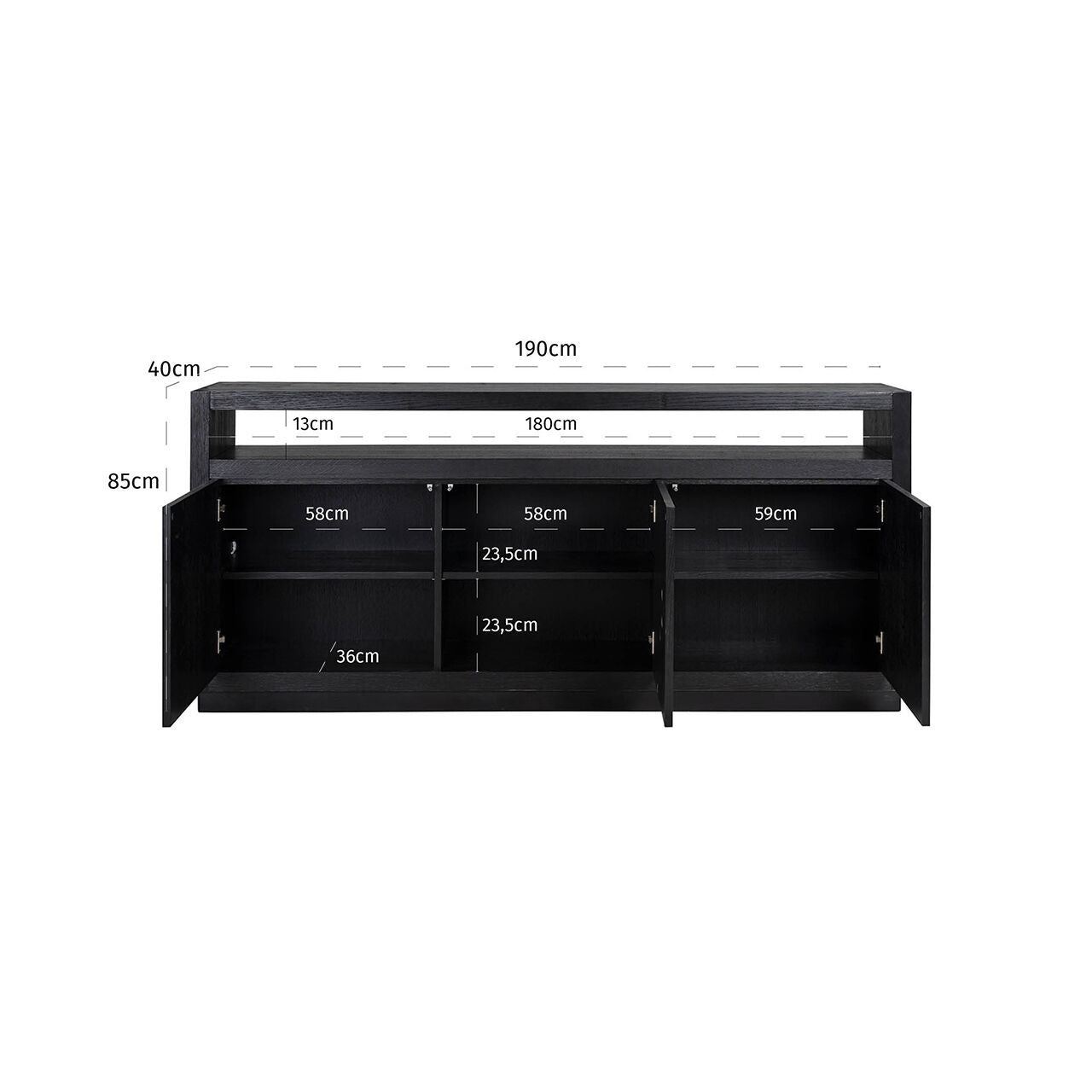Black -Colored -Furnier verleiht Oakura einen ungewöhnlichen, coolen Charme, der das Innenraum jedoch mit einem einzigartigen Stil bereichert. Diese Farblösung schafft einen effektiven Kontrast in leichteren Räumen und mischt sich gleichzeitig mit dunkleren Möbeln oder Dekorationen ein. Schwarz ist eine Farbe, die immer Eleganz und Klassiker ausstrahlt.