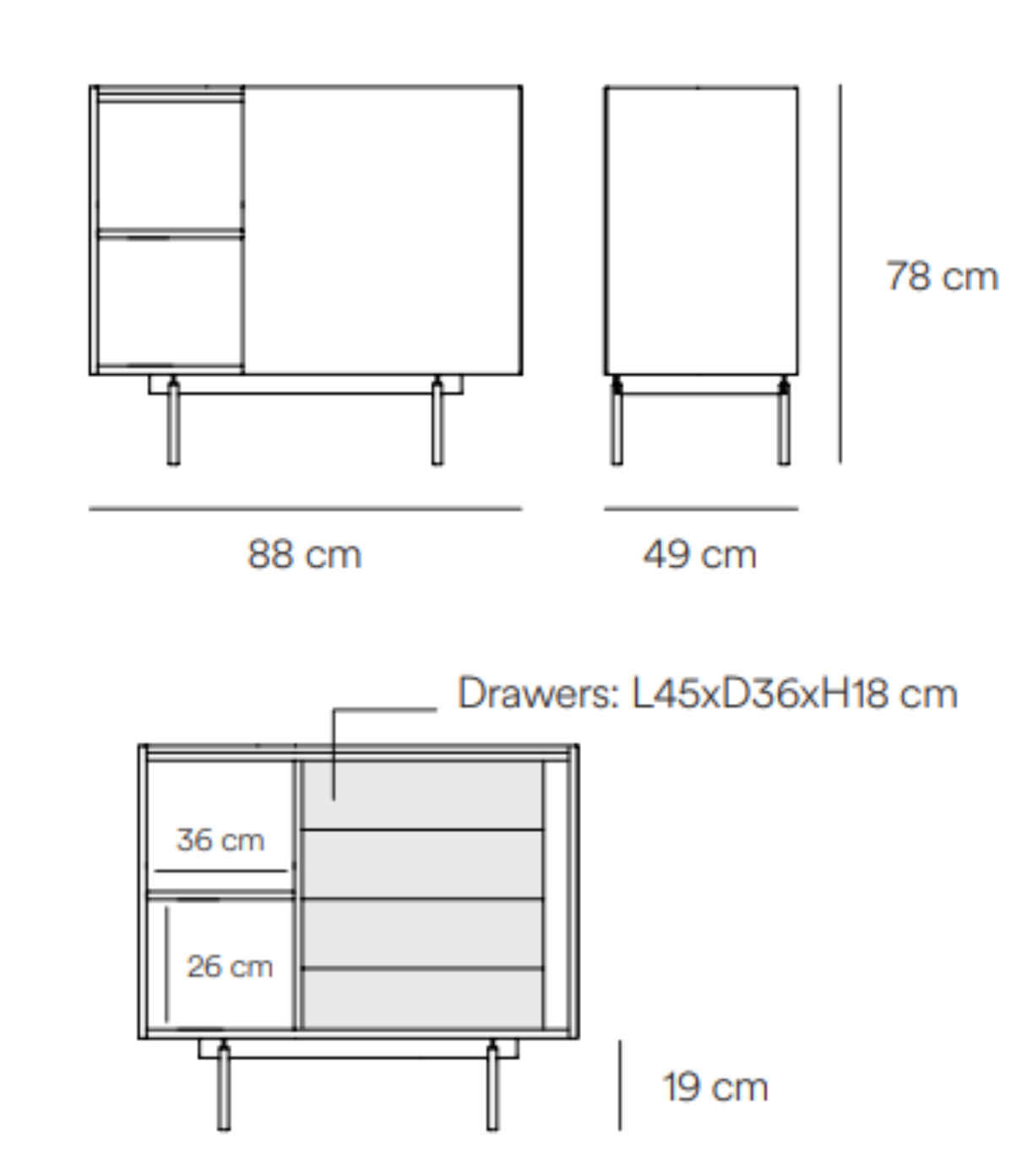 Kabinett Otto in Beige zeichnet sich durch einen modernen Stil mit klaren Linien aus, in denen sich die Farbe harmonisch mit den Akzenten des natürlichen Furniers verbindet, was es ihm ermöglicht, sie an verschiedene Räume anzupassen. Sein Design wurde für die Funktionalität entwickelt - es hat einen offenen Teil, ideal für Dekorationen oder Lieblingsbücher. Im zweiten Teil sind die Schubladen hinter der Tür versteckt, um einen diskreten Raum für die Aufbewahrung verschiedener Objekte zu gewährleisten.