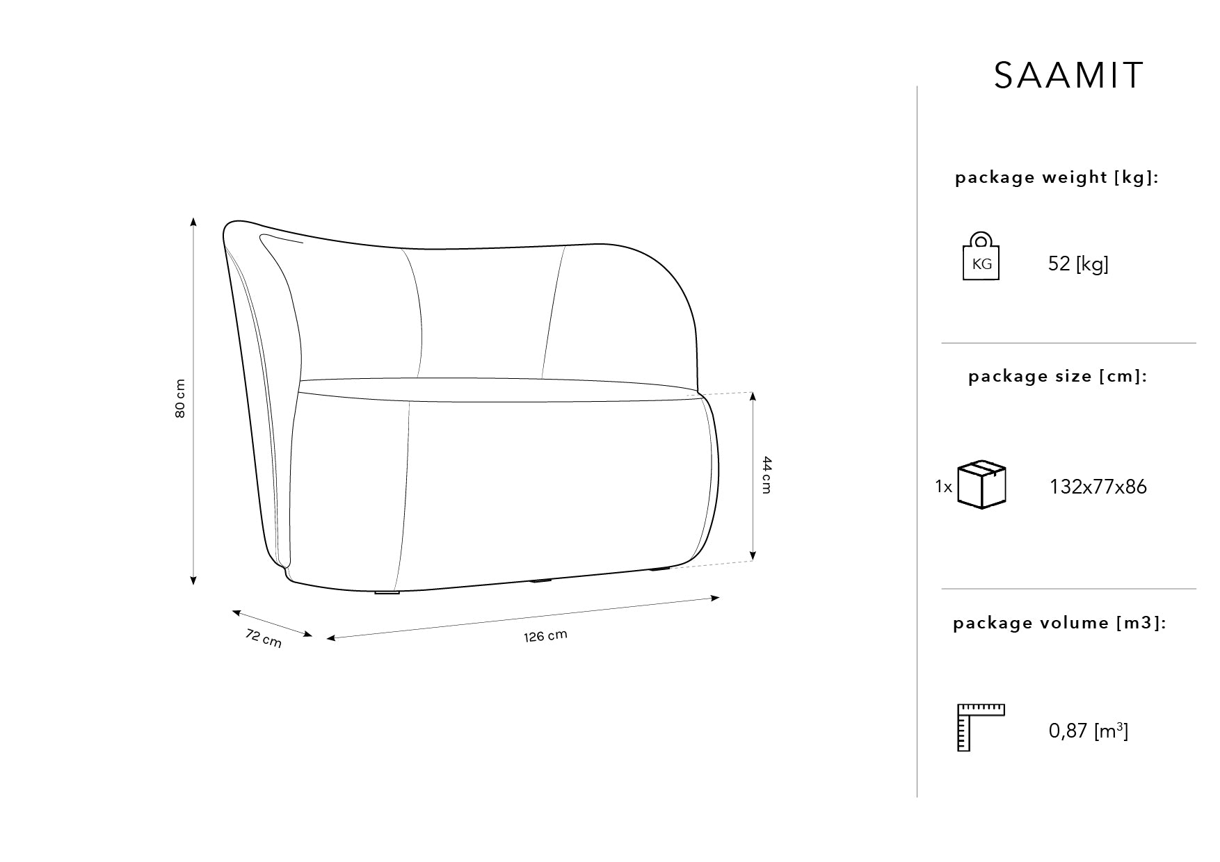Die ungewöhnliche, harmonische Form der Saamit -Sammlung in Japandi -Stil Es kombiniert Eleganz mit Funktionalität. Das Designer -Sofa für zwei Dank der optimierten Formen wird es viel Wärme in den Innenraum bringen. Polsterung mit Der dicke, strukturelle Bouclé -Stoff mit einem engen, verdrehten Gewebe führt zu einem mehrdimensionalen Eindruck. Der Stoff sieht nicht nur phänomenal aus, sondern hat auch ein sehr hohes Maß an Abriebfestigkeit.