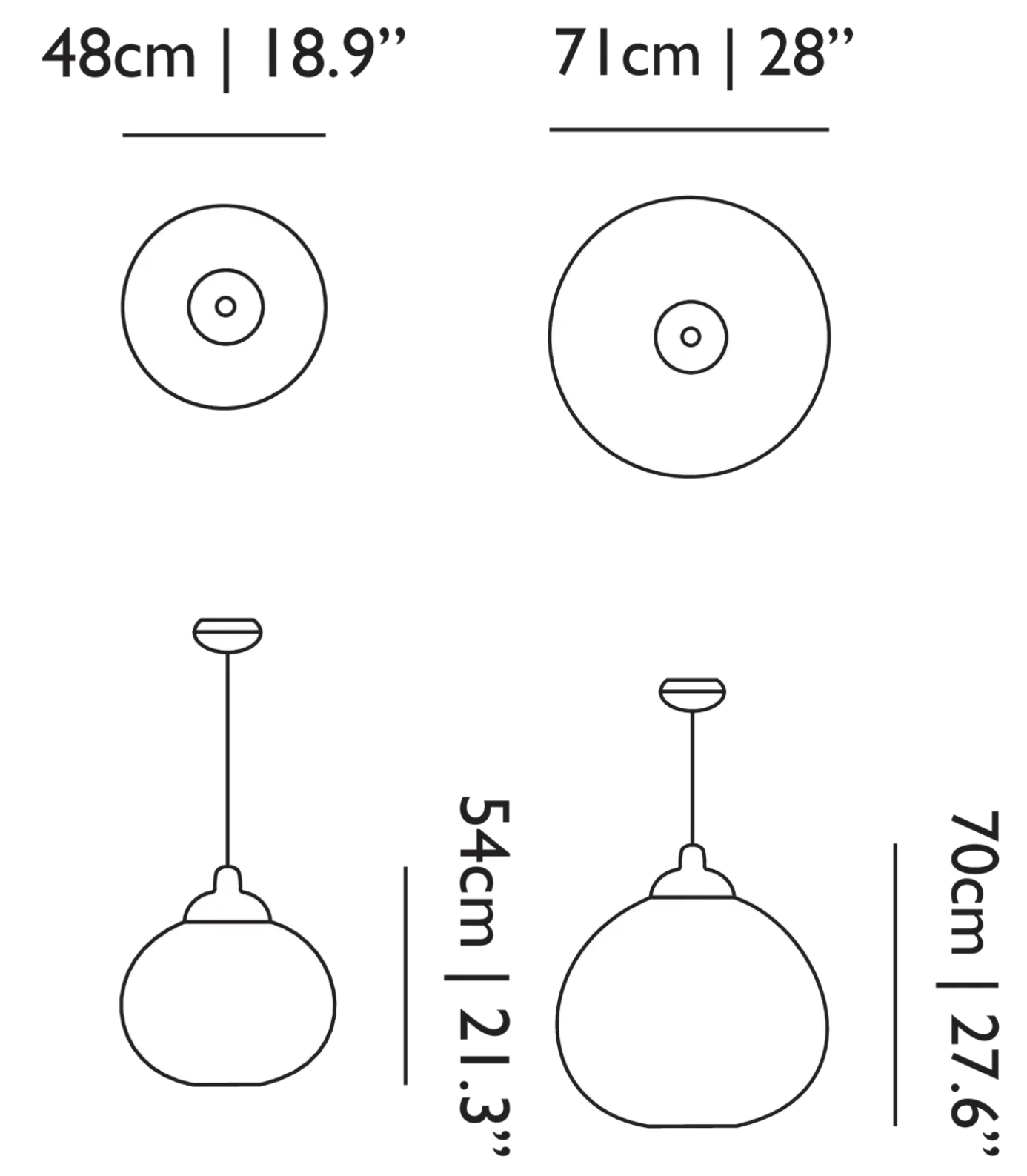 Material: Glasfaserkugel mit Epoxidharz, pulvergelackter Aluminiumlampenschirm, anodierter Aluminiumreflektor